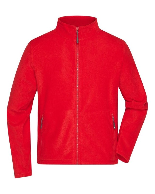100% poliestre. Pile con colletto. Tessuto esterno (280 g/m²). Easy care, antipilling, in micropile, 2 tasche laterali con cerniera, etichetta strappabile.