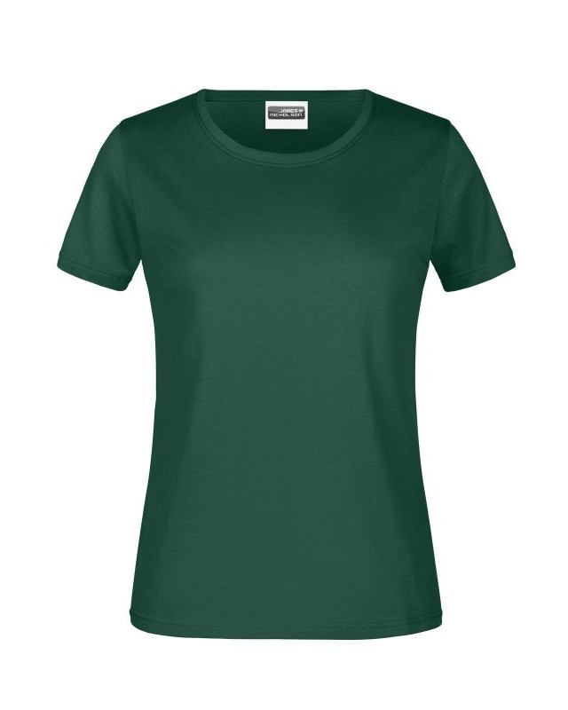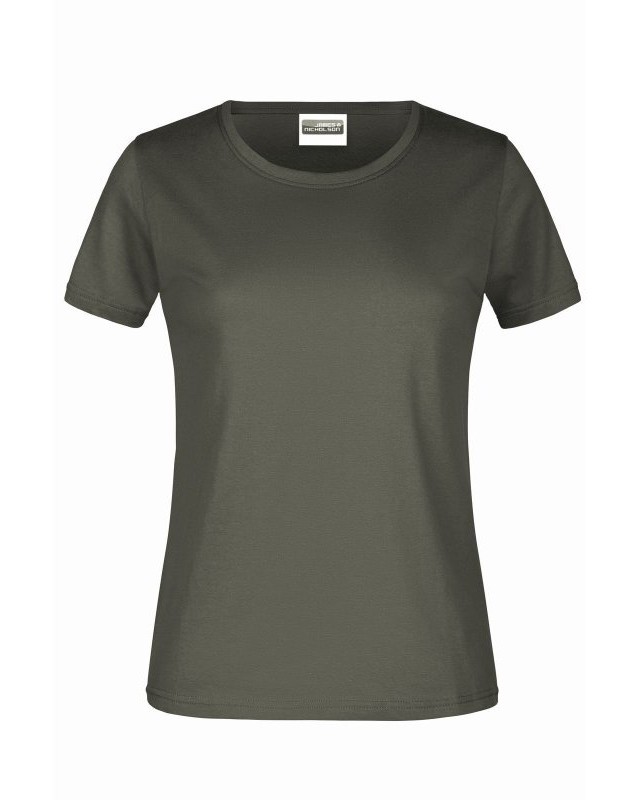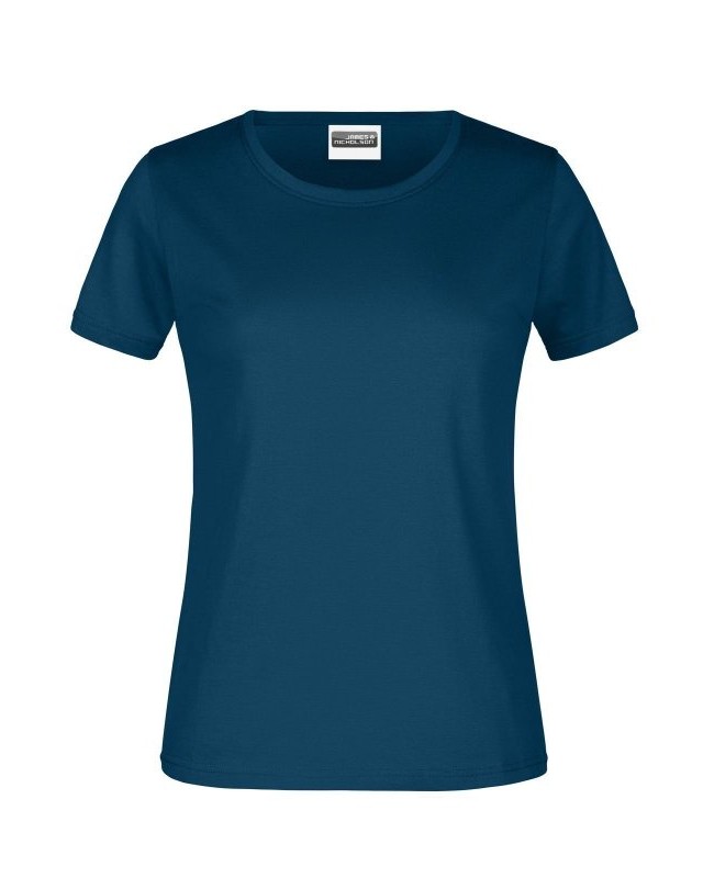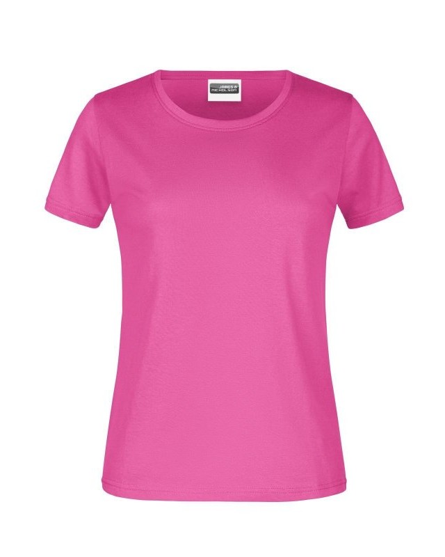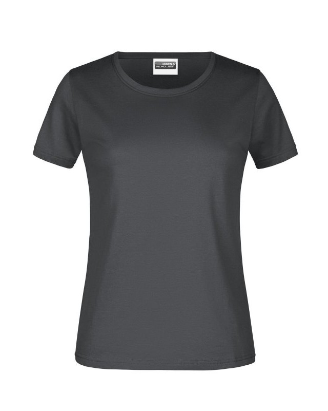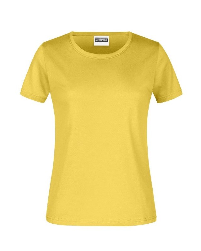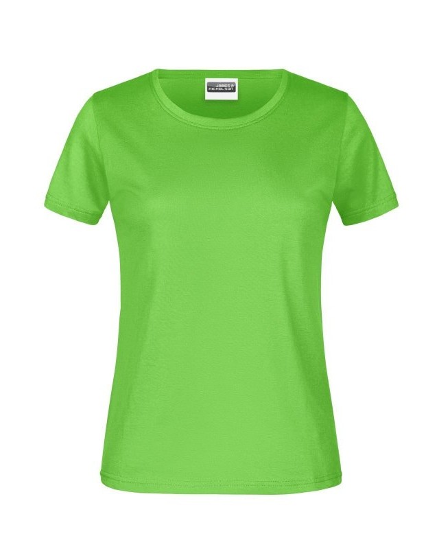 100% cotone, single jersey. T-shirt girocollo da donna con bande sulle maniche in elastane, etichetta strappabile, leggermente sfiancata.
