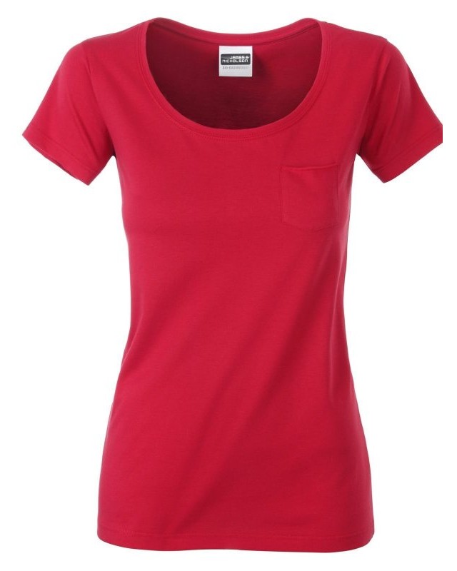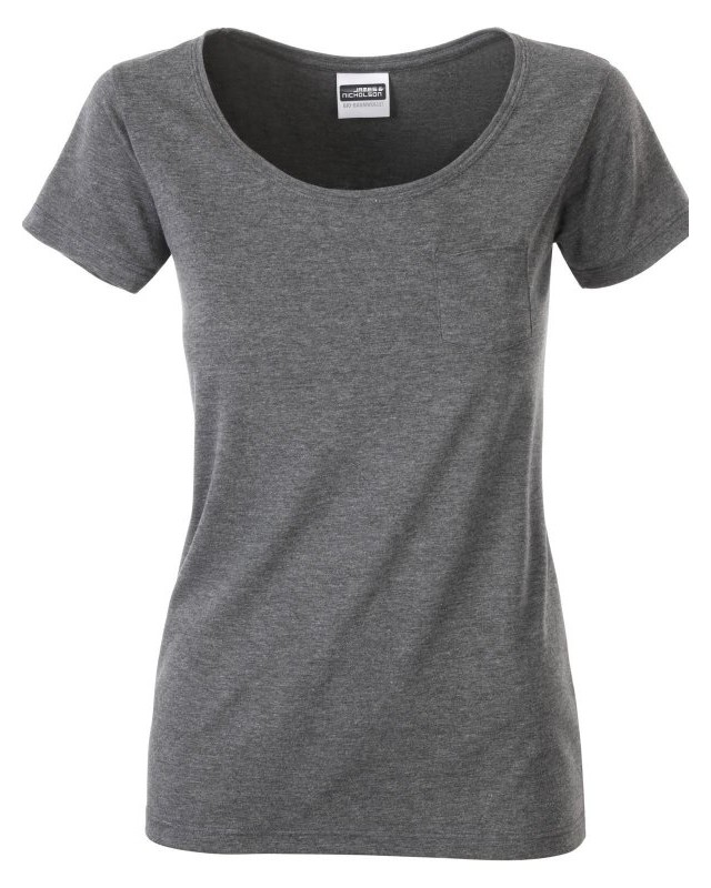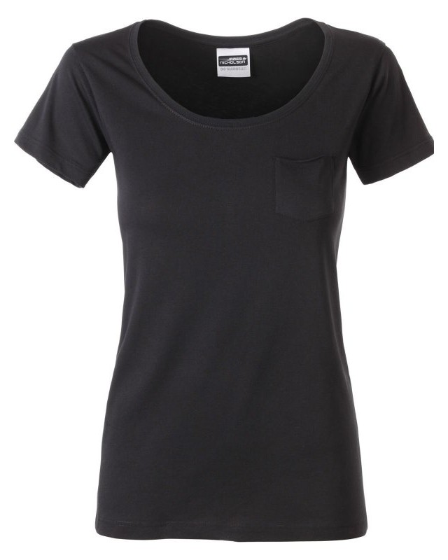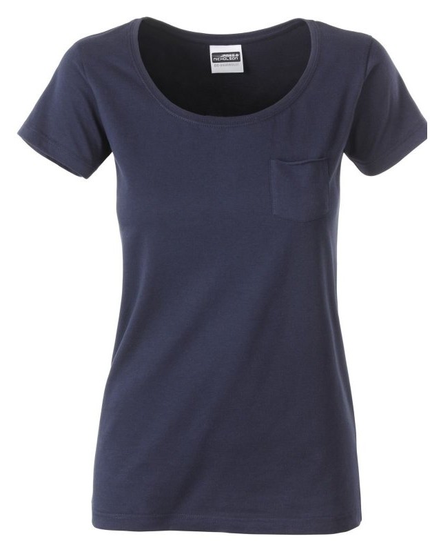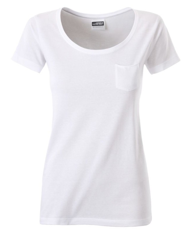 100% cotone organico. Single jersey, T-shirt con girocollo profondo, manica corta, giromaniche con elastan, taschino con orlo arrotolato. Leggermente sfiancata, etichetta strappabile, struttura con cuciture laterali.