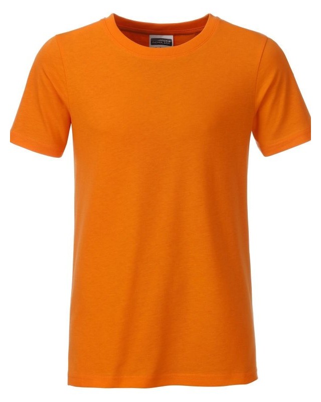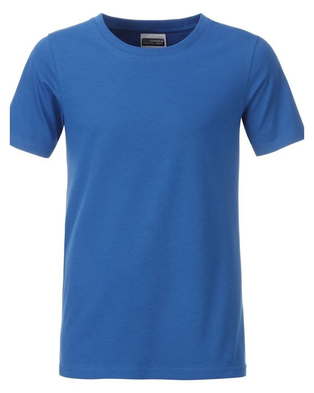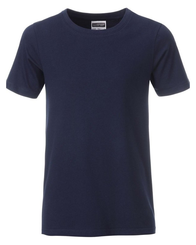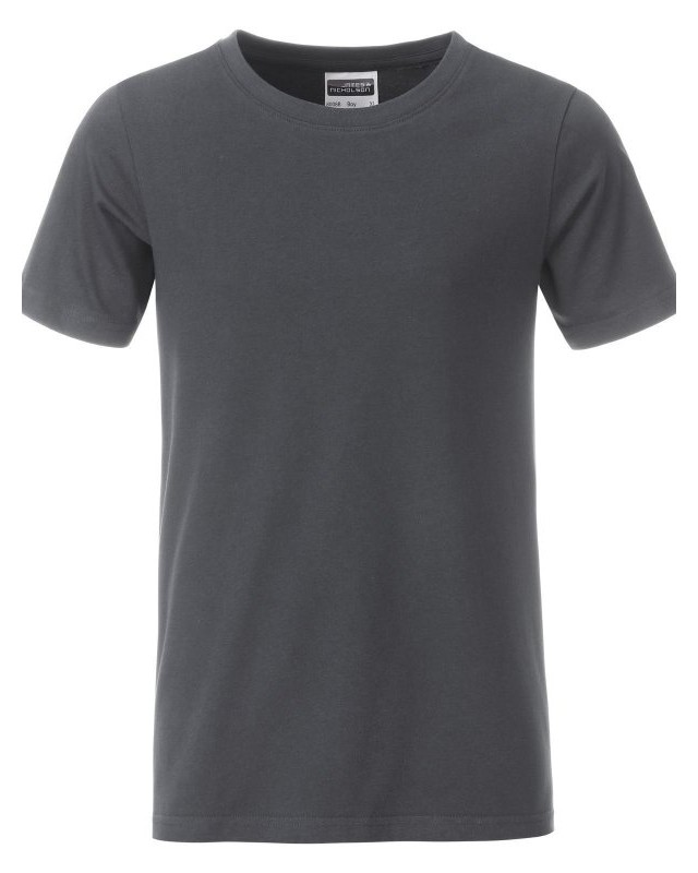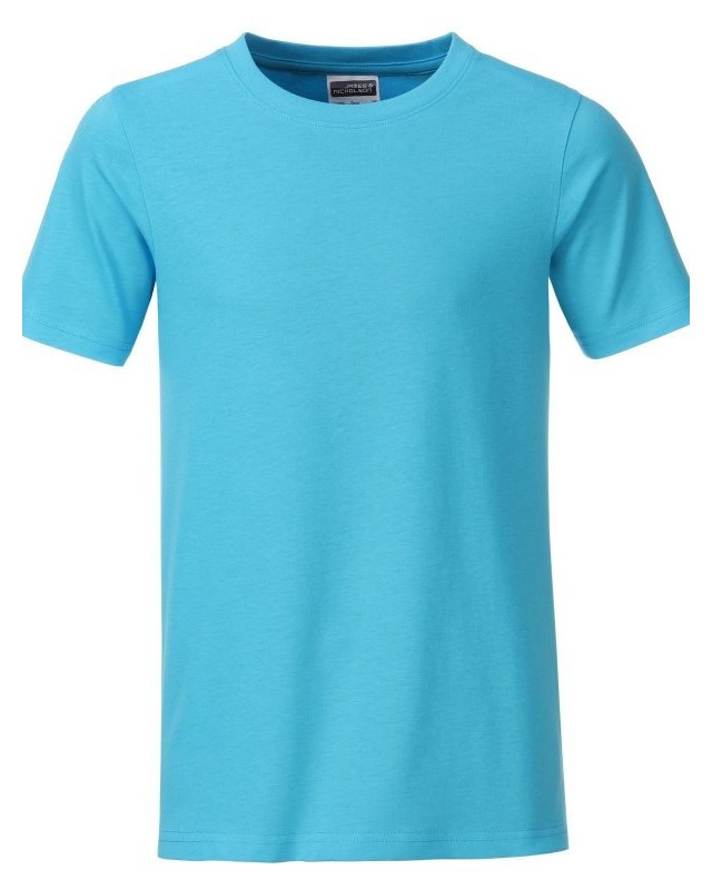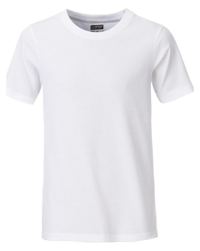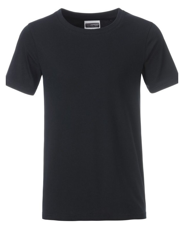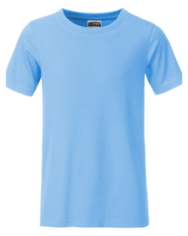 100% cotone organico. T-shirt classica per ragazzo in single jersey, collo rotondo, cuciture in elastane, etichetta removibile.