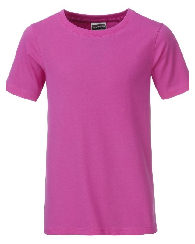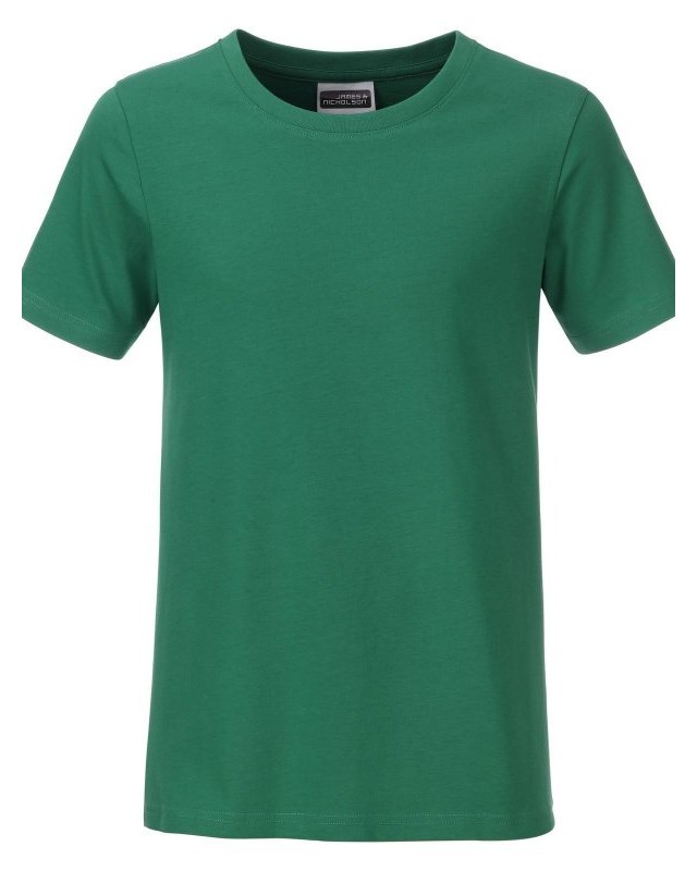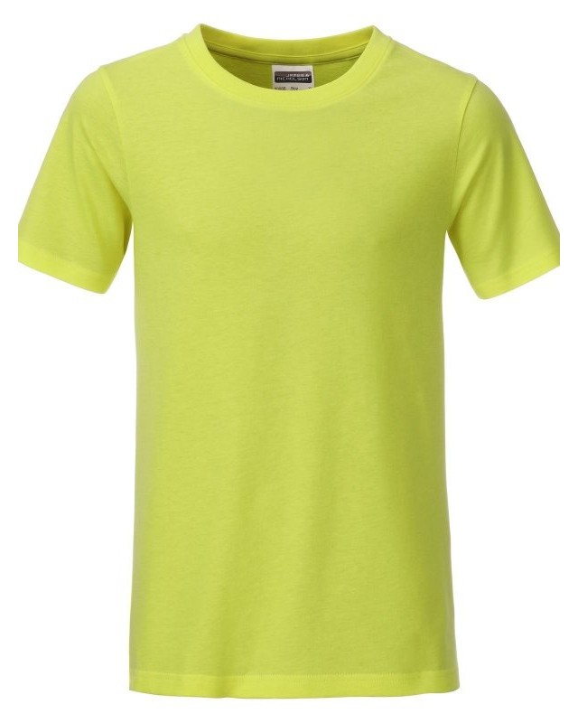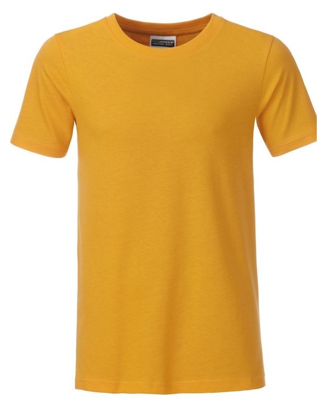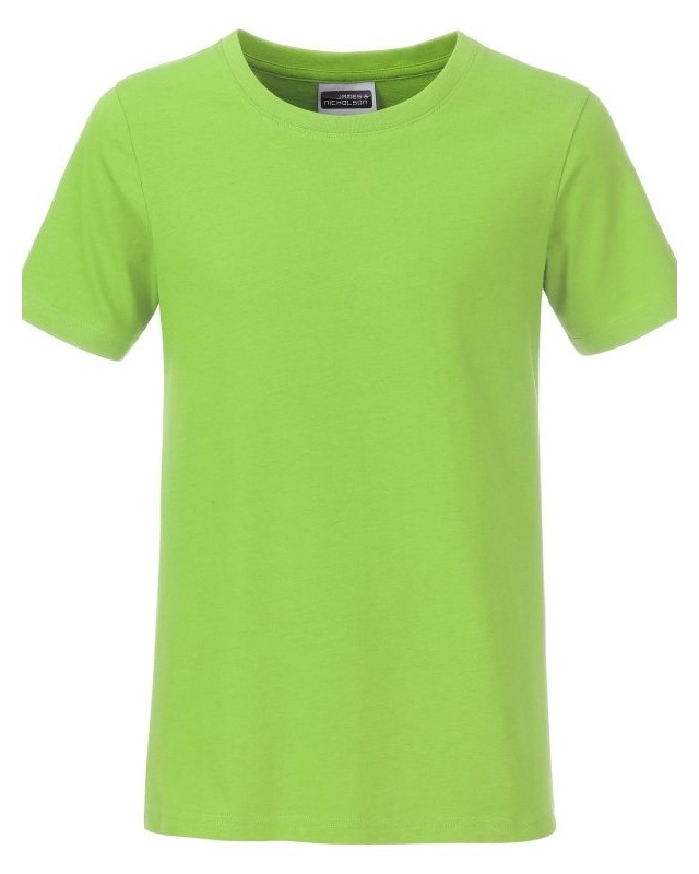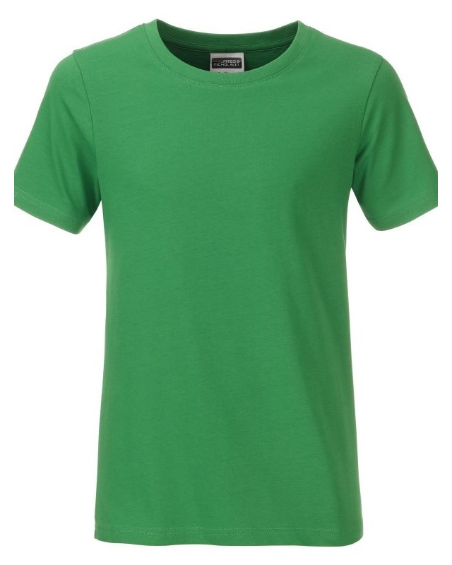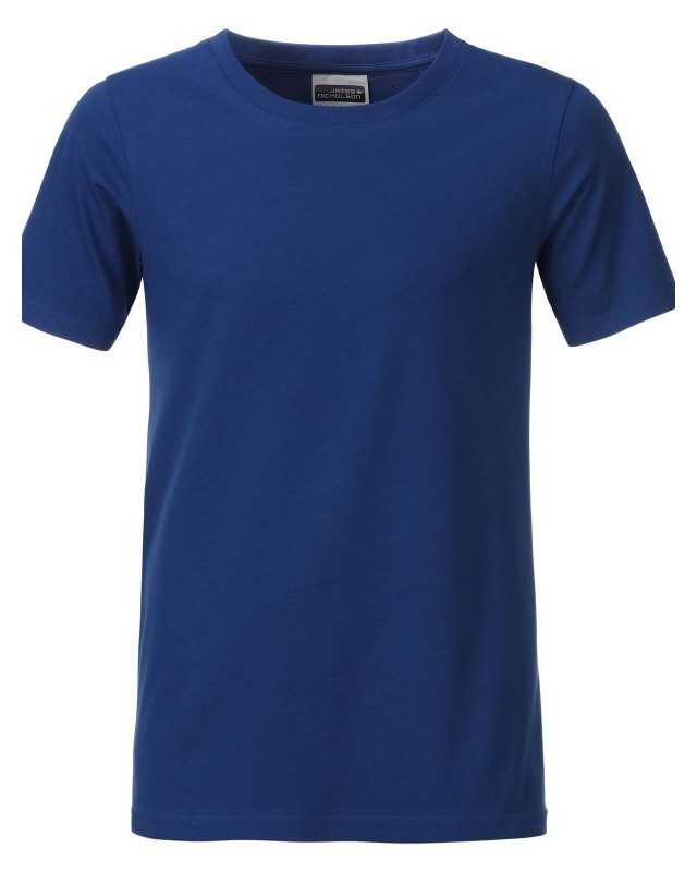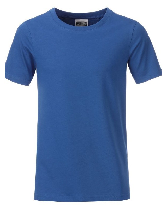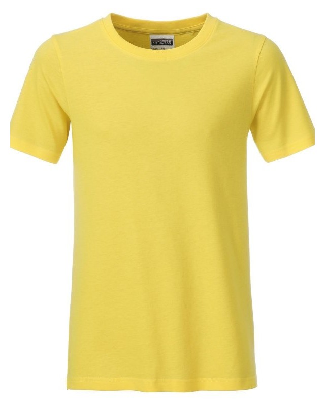 100% cotone organico. T-shirt classica per ragazzo in single jersey, collo rotondo, cuciture in elastane, etichetta removibile.