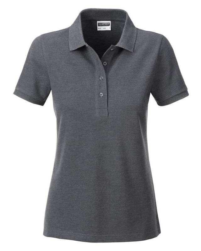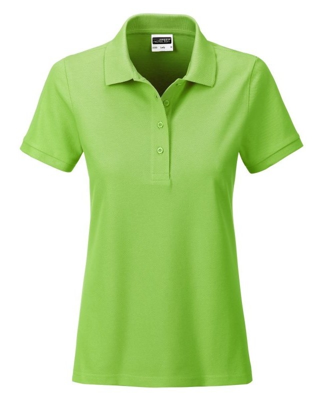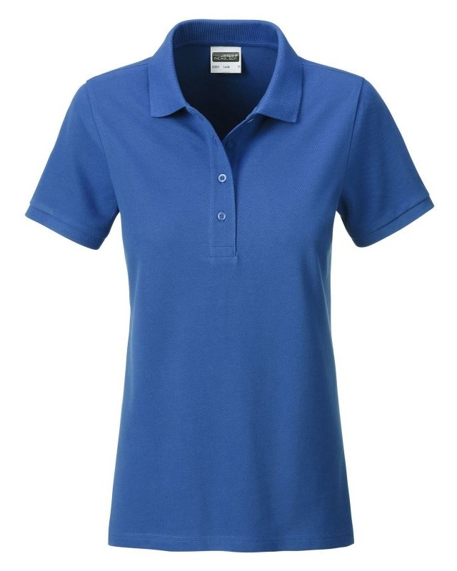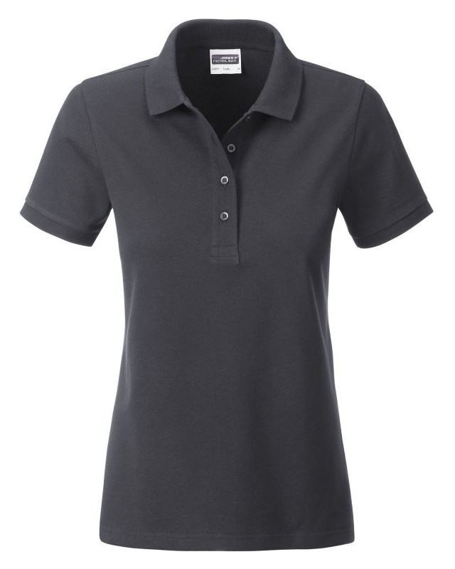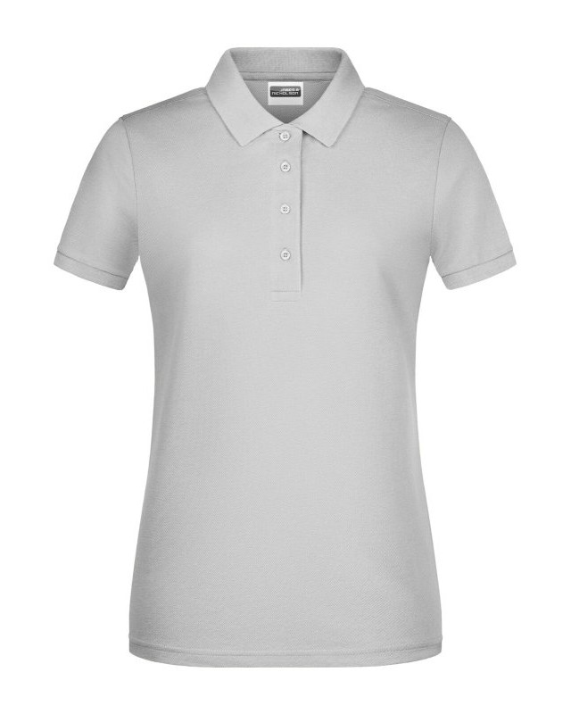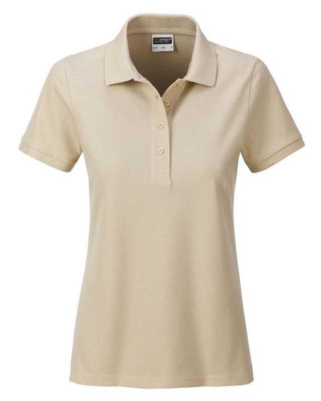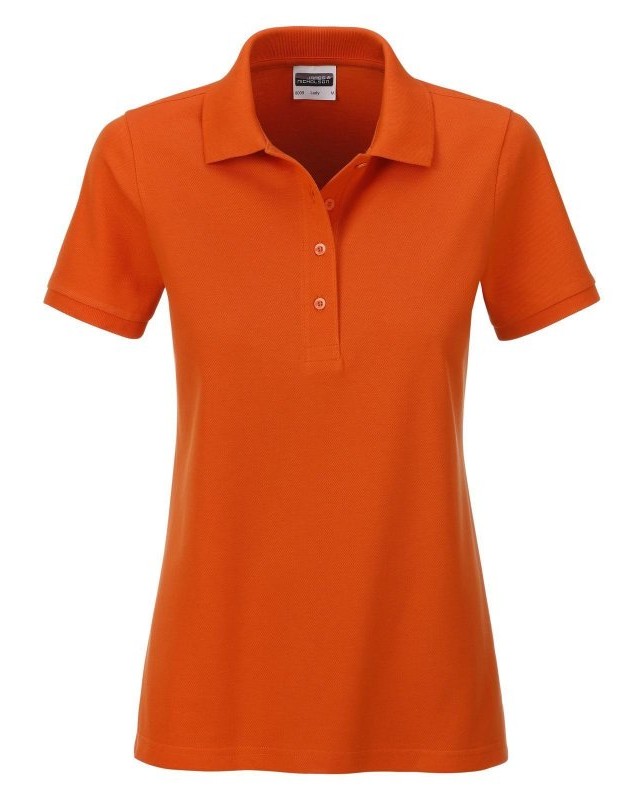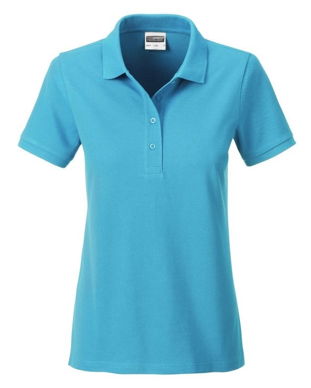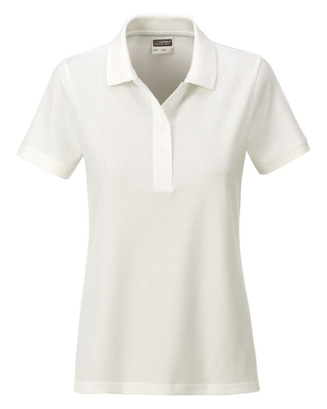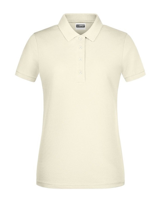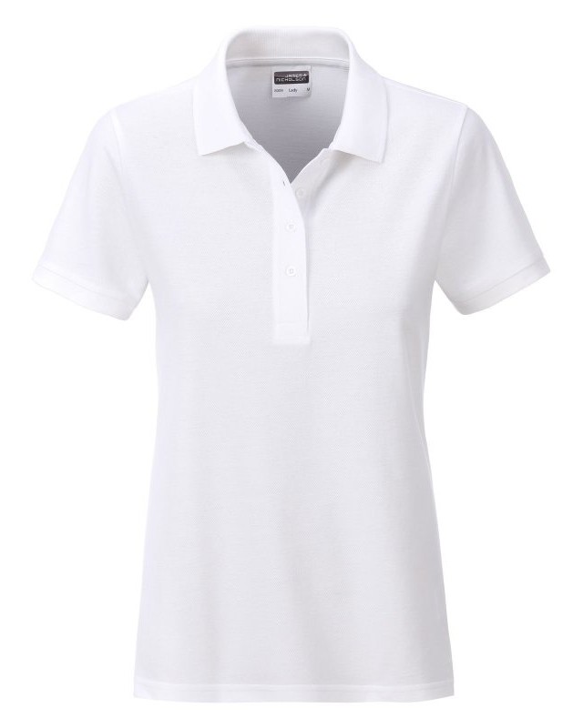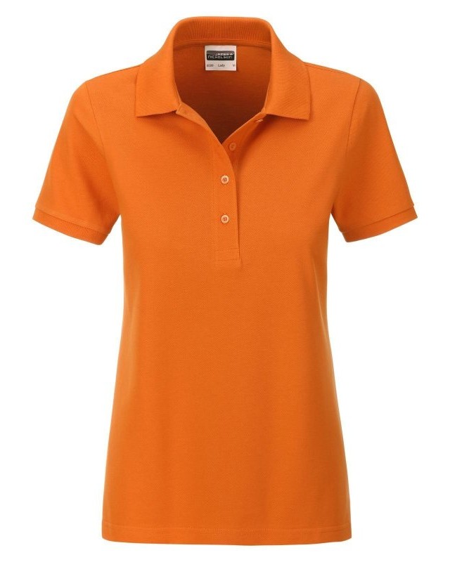 100% cotone piqué organico. Polo classica da donna con collo e polsini lavorati a maglia, 4 bottoni tono su tono, spacchetti laterali, etichetta removibile. Leggermente sfiancata.