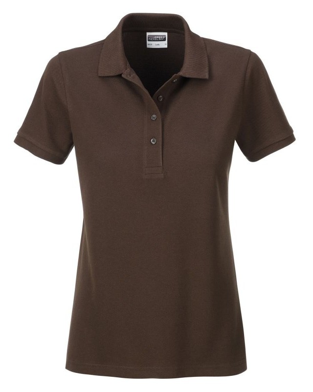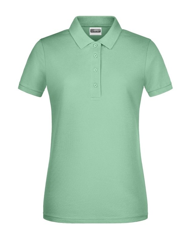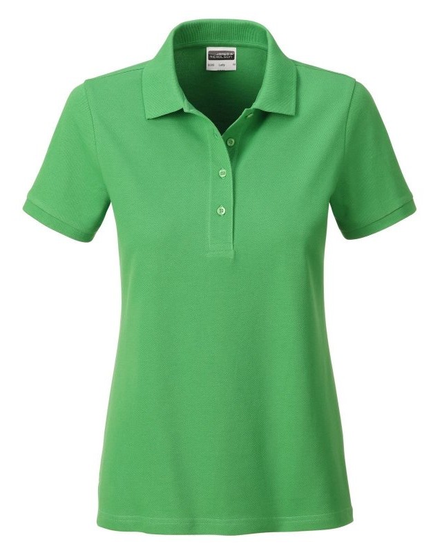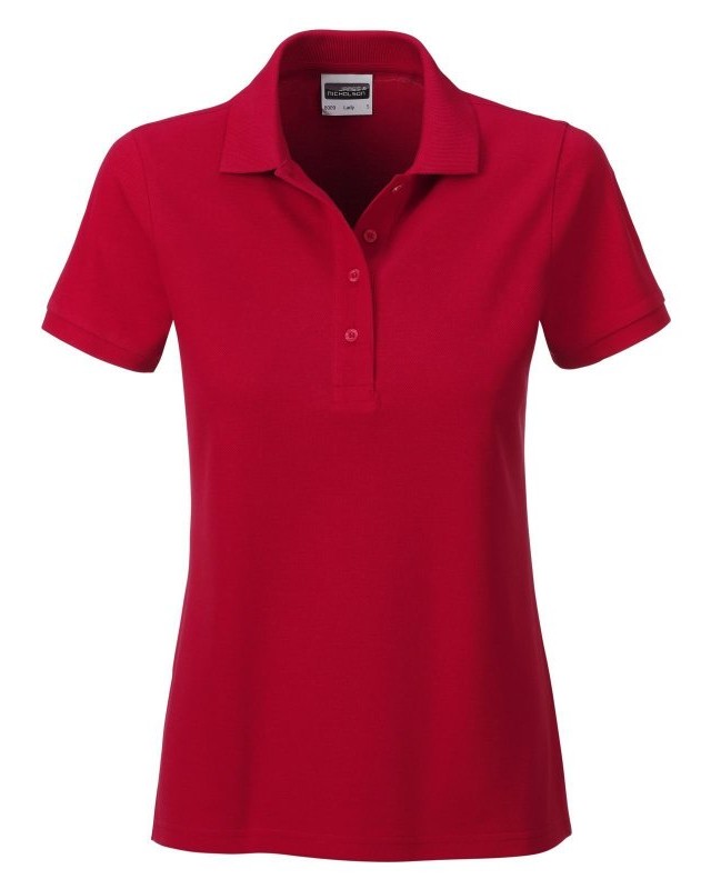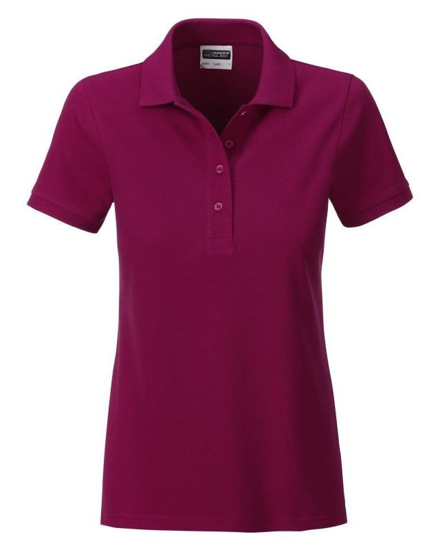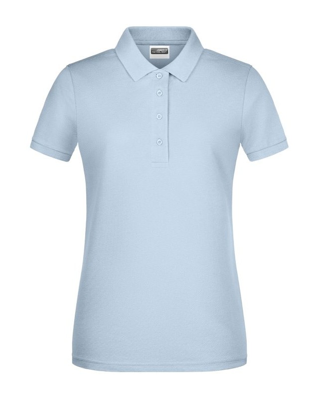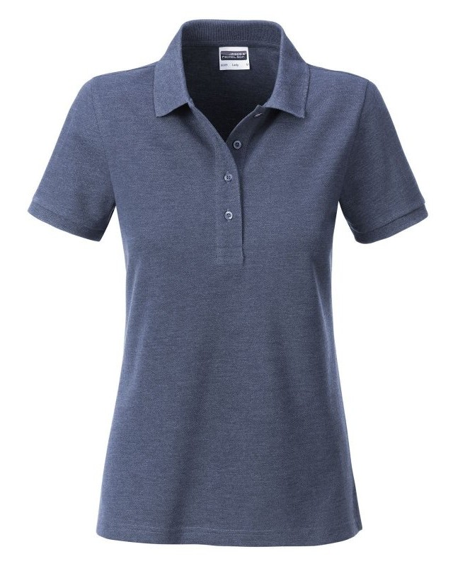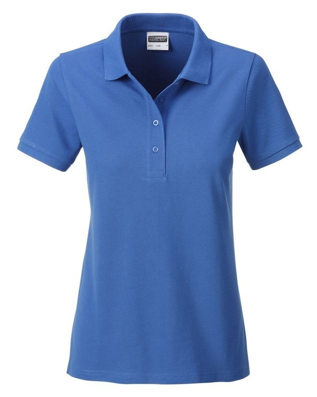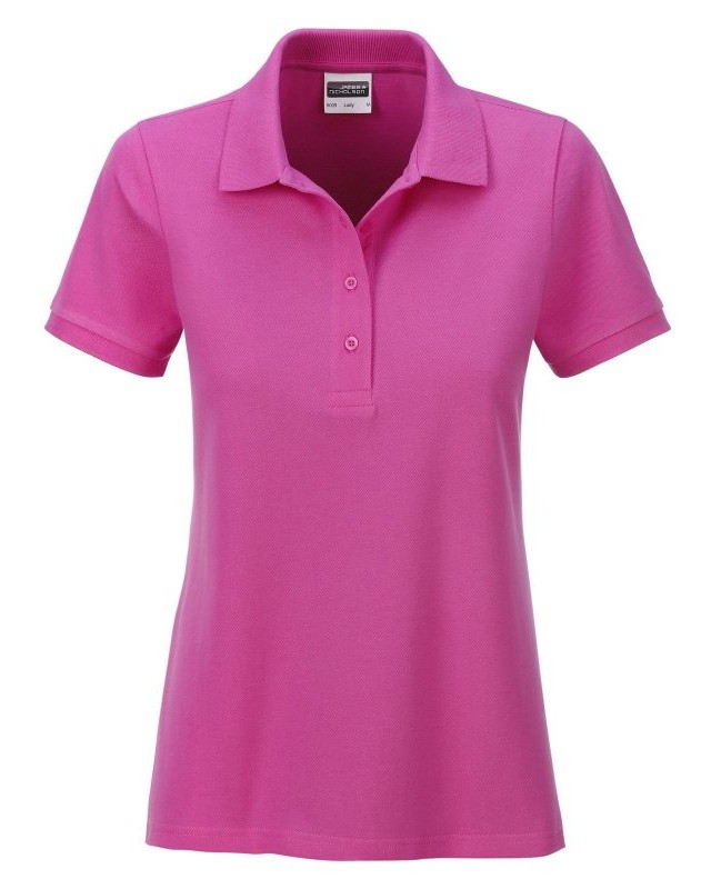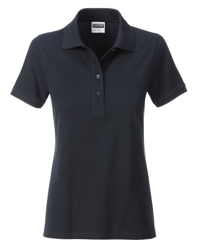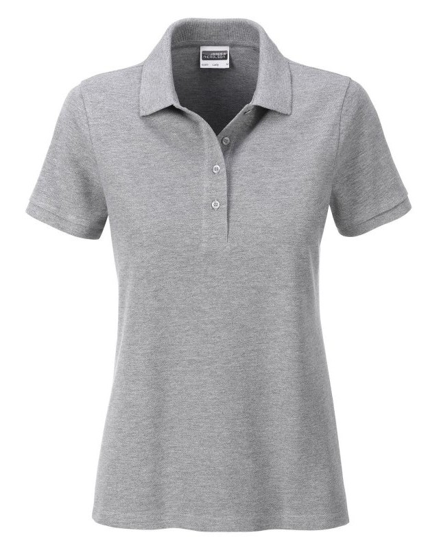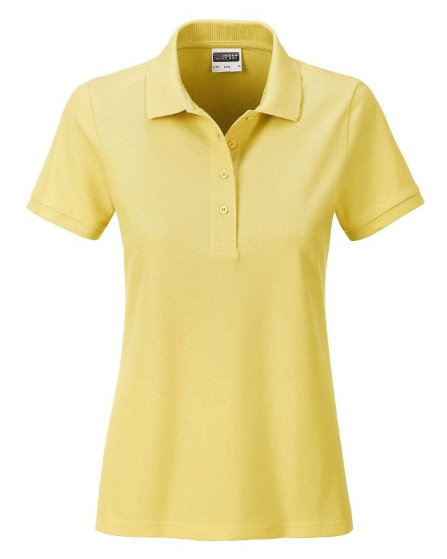 100% cotone piqué organico. Polo classica da donna con collo e polsini lavorati a maglia, 4 bottoni tono su tono, spacchetti laterali, etichetta removibile. Leggermente sfiancata.
