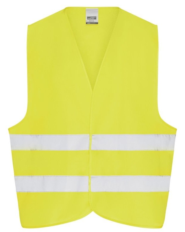 100% poliestere. Gilet di sicurezza per adulti, taglia unica. Bande riflettenti sul davanti e sul retro, Pratica chiusura in velcro. EN ISO 20471 : 2013 classe 2.