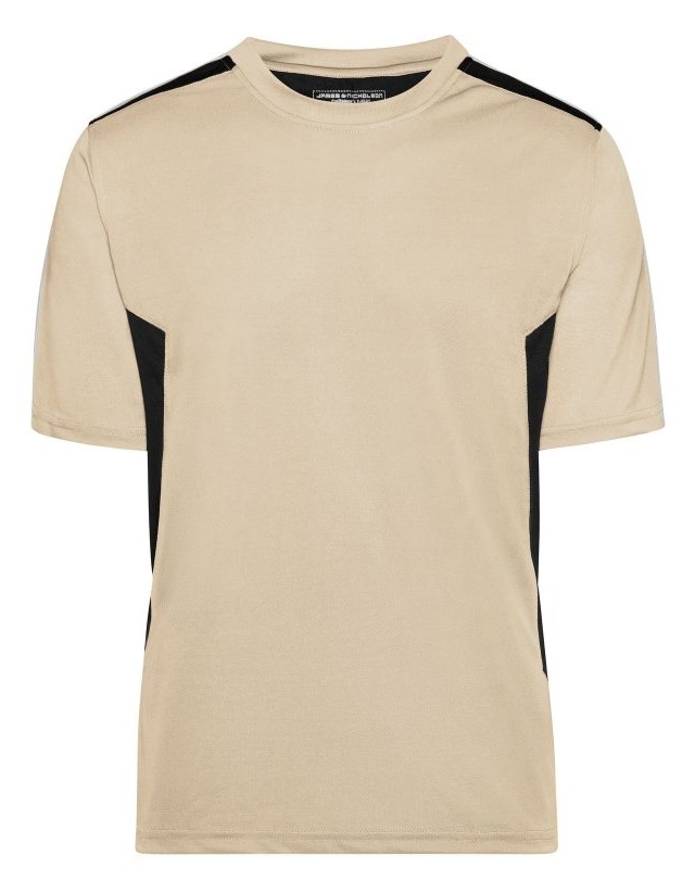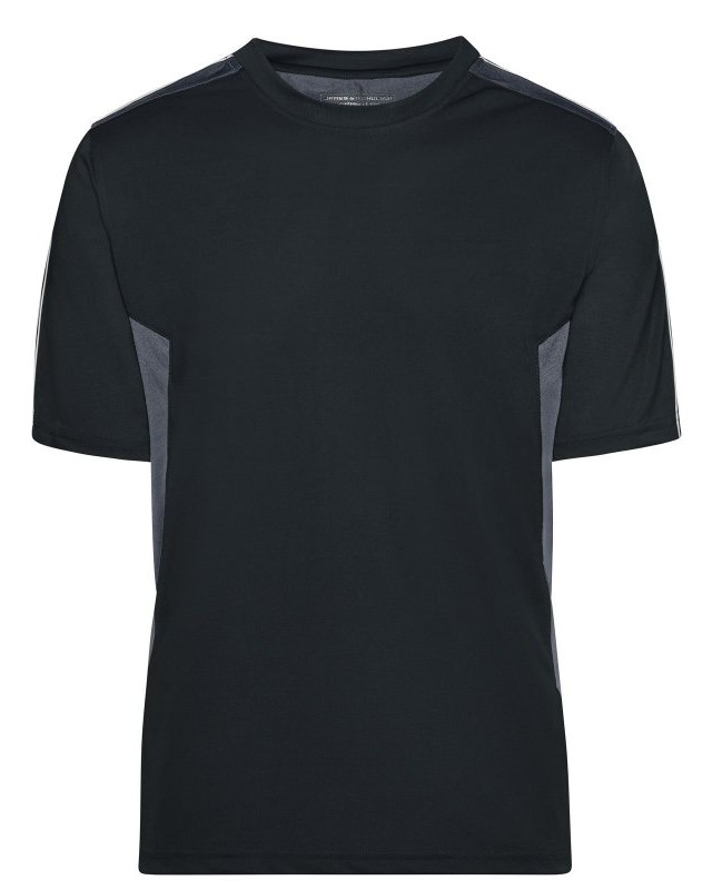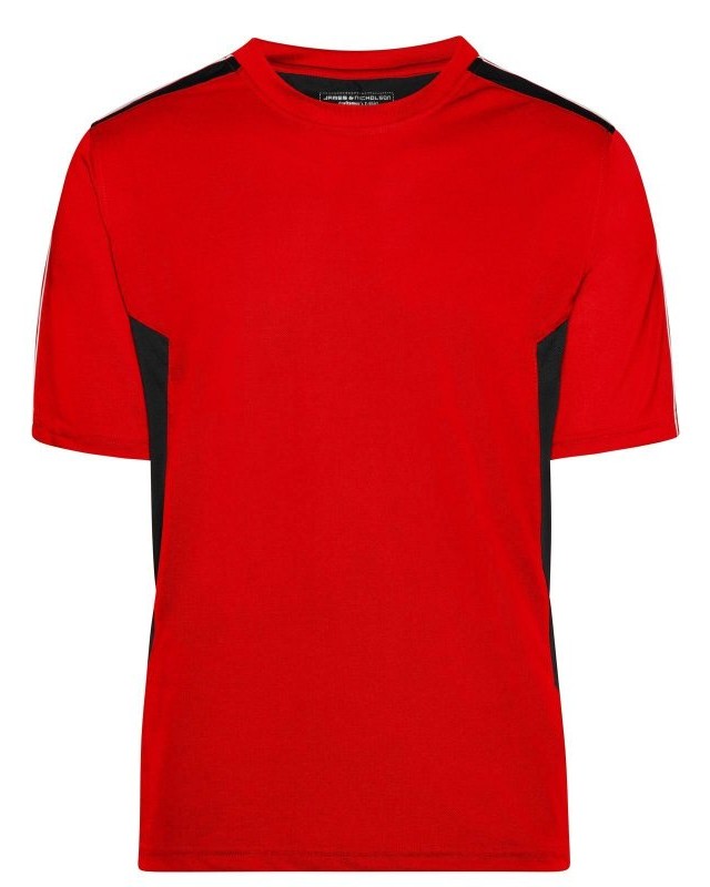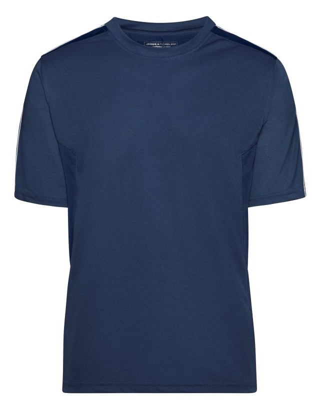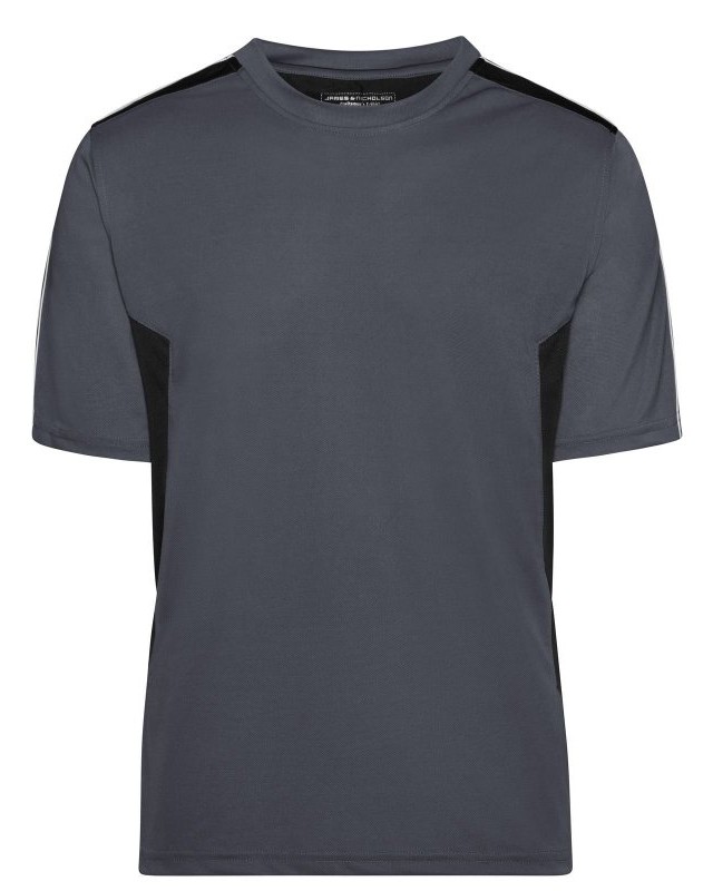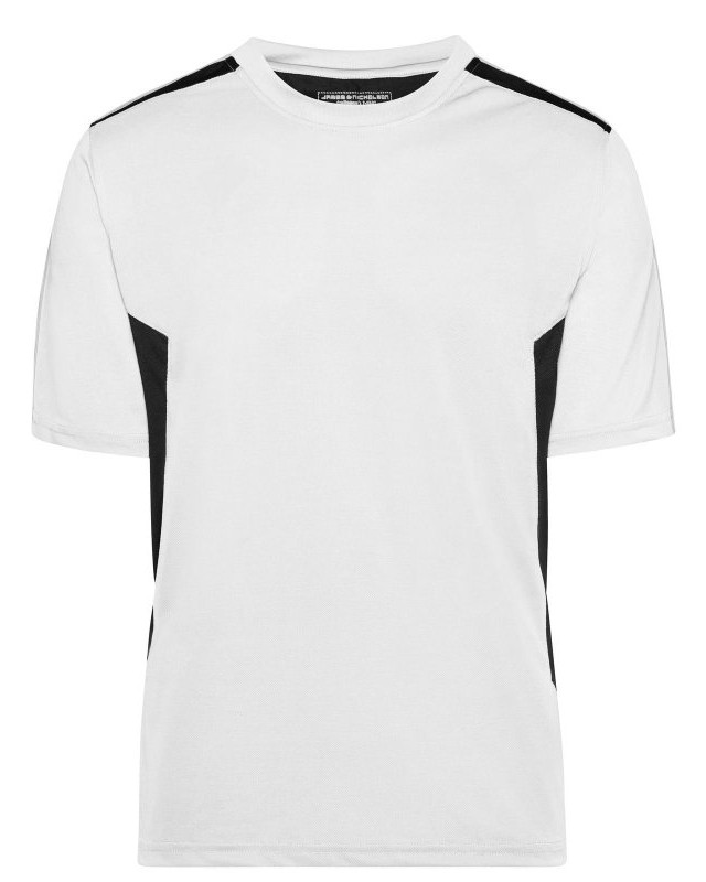 100% poliestere. T-shirt girocollo, manica corta set-in, funzionale, traspirante e leggera. Inserti di colore contrastante su spalle e maniche. Struttura con cuciture laterali.