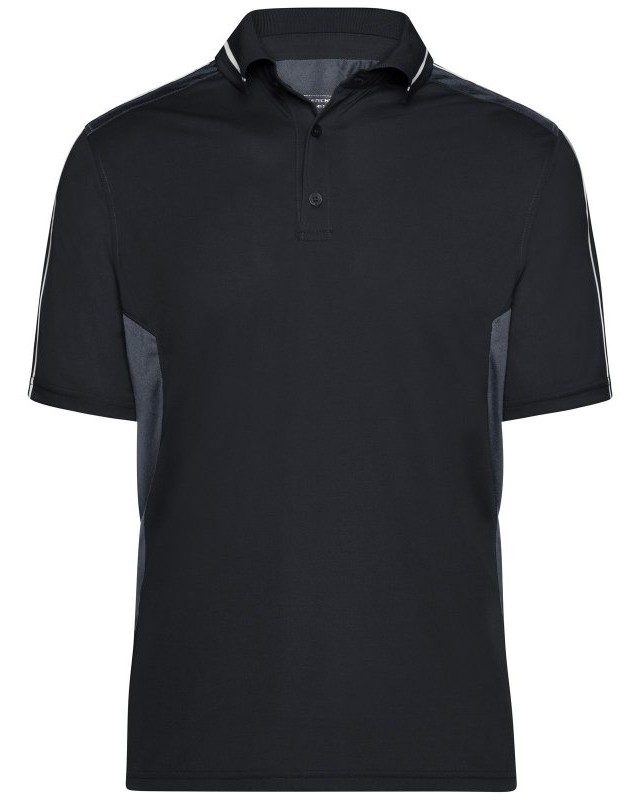 100% poliestere. Polo funzionale maniche corte set-in, traspirante, regola l'umidita' e ad asciugatura rapida. Tessuto leggero, inserti di colore contrastante, colletto in maglia con righe a contrasto, chiusura a 3 bottoni. Struttura con cuciture laterali.
