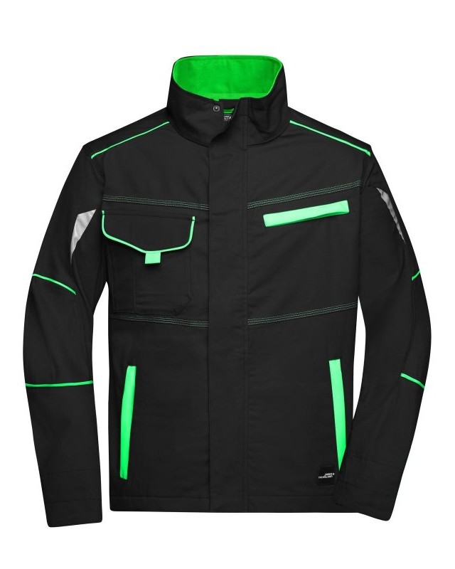 97% cotone, 3% elastan. Giacca leggera in canvas, vestibilità comoda in elastan e dal taglio ergonomico, colletto alto rivestito in soft fleece nella parte interiore, cerniera intera nascosta, tasche laterali con cerniera, taschino al petto, tasca interna al petto con chiusura in velcro, tasca interna per telefono cellulare, dettagli catarifrangenti sia davanti che sul retro, lavabile a 60°C, adatta ad asciugatrice, tutti i bottoni e le cerniere sono nascosti.
