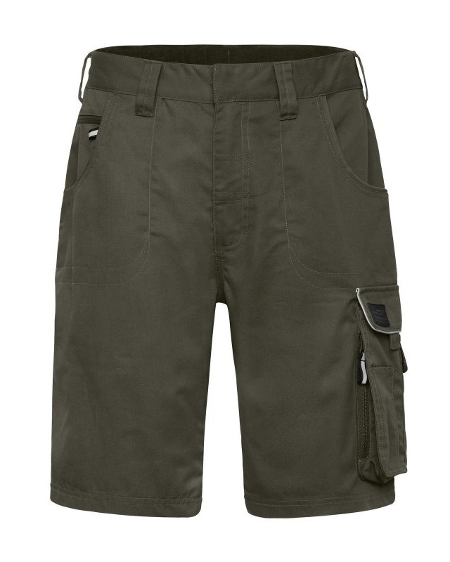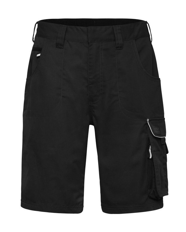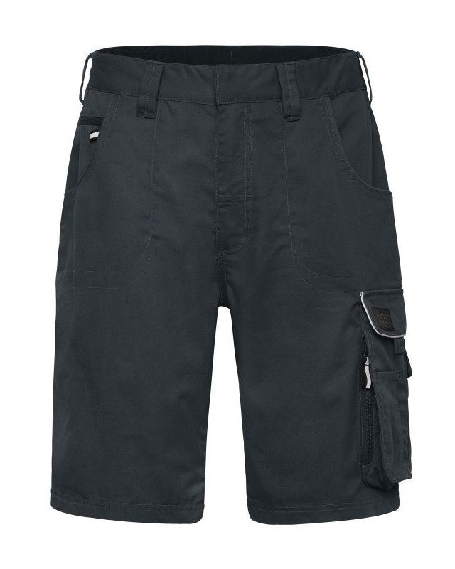 65% poliestere, 35% cotone, rifiniture 100% poliammide. Bermuda da lavoro in tessuto misto confortevole, resistente e robusto, girovita elastico con passanti per cintura, triple cuciture, tasche frontali, tasche porta attrezzi, due tasche con zip, taschino per cellulare, taschino porta penna con rinforzo CORDURA, dettagli riflettenti (senza funzione protettiva / senza DPI) sulle tasche, zip YKK, lavabile a 60° C e ideale per asciugatura in asciugatrice. Per evitare che il prodotto si rovini, bottoni e zip sono nascosti.
