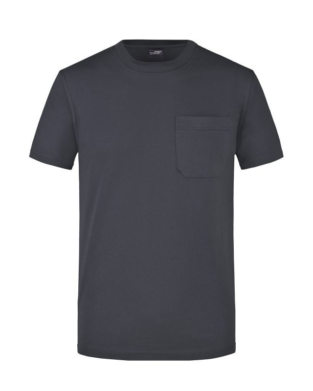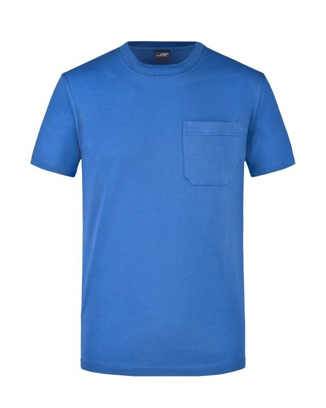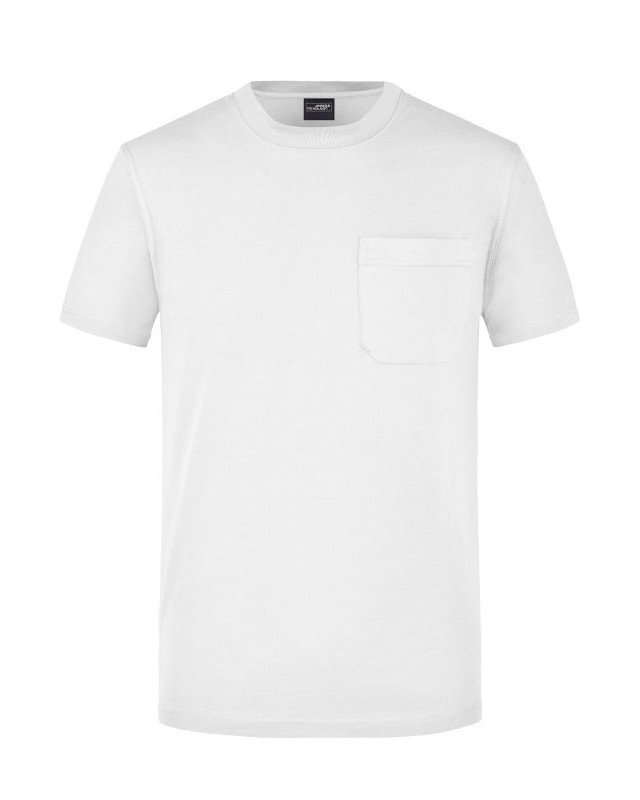 100% cotone. T-Shirt classica con taschino Girocollo con elastan e Necktape, Cuciture doppie sulle spalle, sullo scollo e sul giromanica. Taschino in rilievo, Lavabile a 60°, mantiene la forma, Tessuto esterno (180 g/m²): Manica corta, Professionale, Collo rotondo.