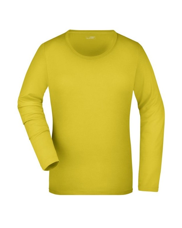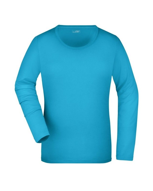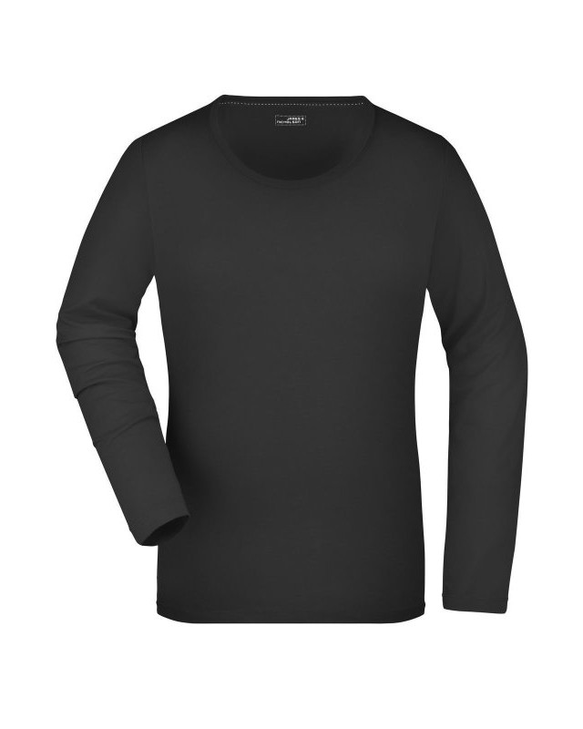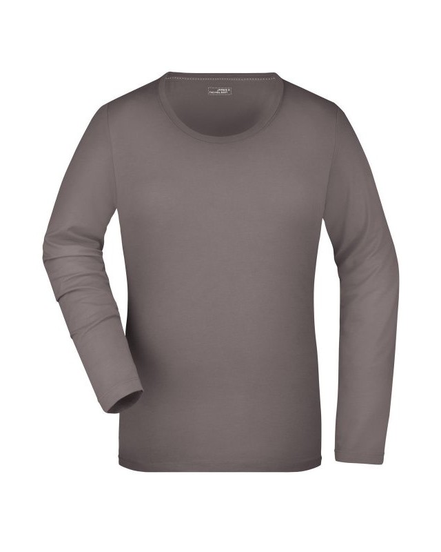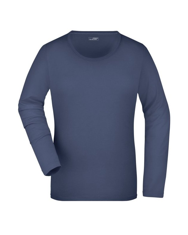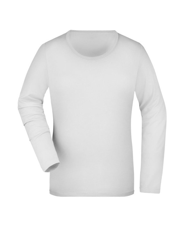 95% cotone, 5% elastan. T-shirts a manica lunga da jersey elastico morbido Taglio ampio, Scollo tondo con bordino stretto, Tessuto esterno (170 g/m²). Donna, Manica lunga, Taglio sciancrato.