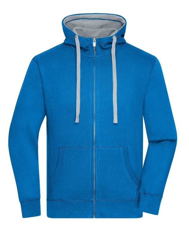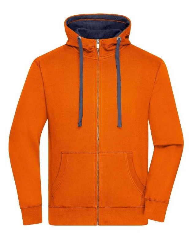 80% cotone, 20% poliestere. Giacca in felpa cappuccio e zip Alta qualità, tessuto in felpa morbido, Polsini con elastan. Cuciture piatte in tinta, 2 strati di cappuccio all'interno e cordino in colore contrastante, Tasca Kangoo, taglio morbido. Tessuto esterno (280 g/m²). Felpata internamente.