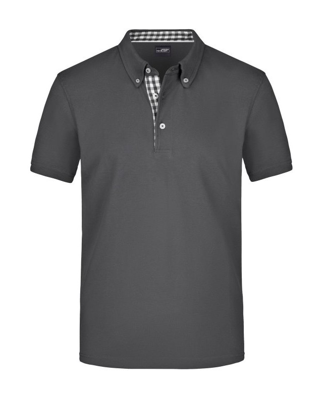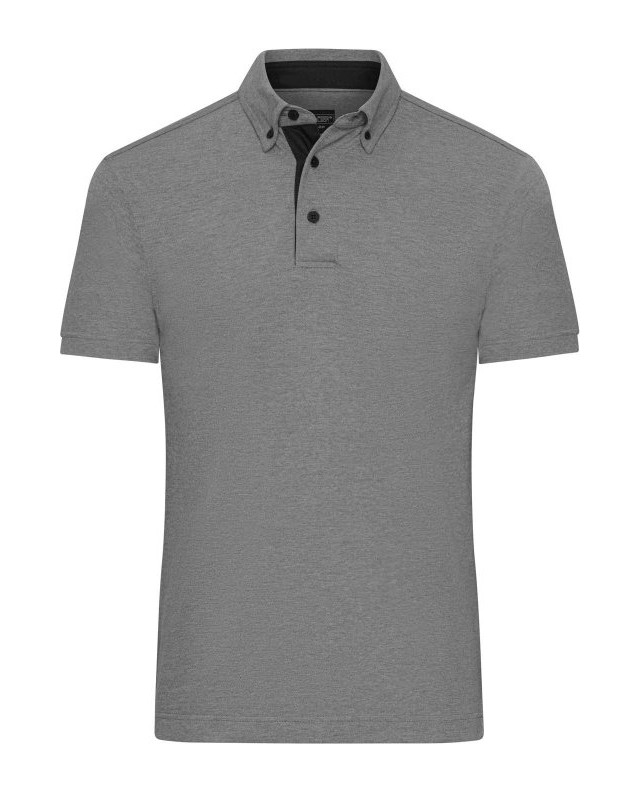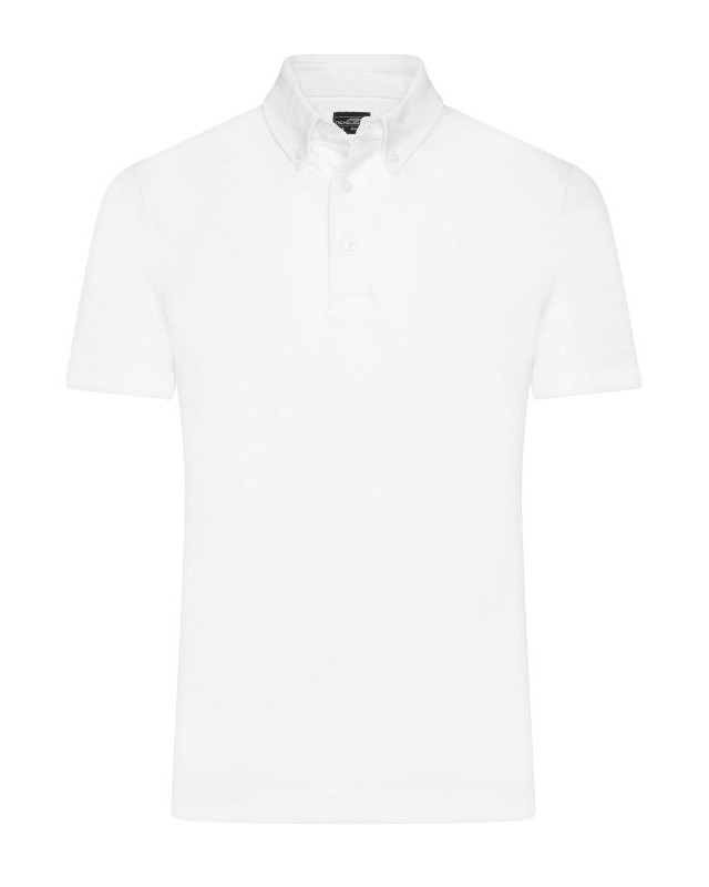 100% cotone. Polo con colletto abbottonato, piqué classico, pregiato, cotone pettinato ring-spun, colletto abbottonato pronto, rifinitura sul colletto, all'interno dell'abbottonatura e sugli spacchi laterali, 4 bottoni in colore a contrasto, mezzaluna tono su tono.