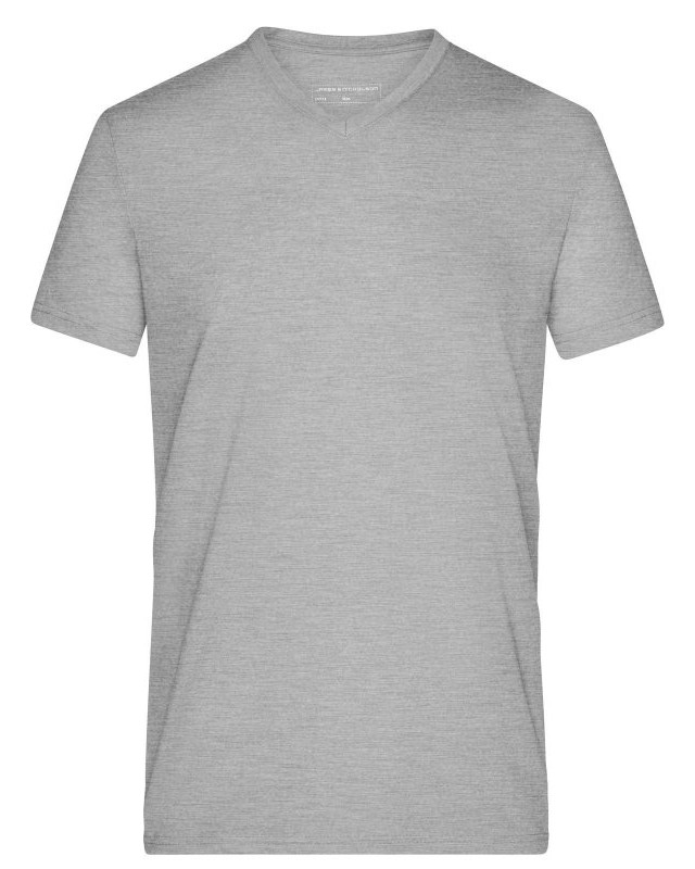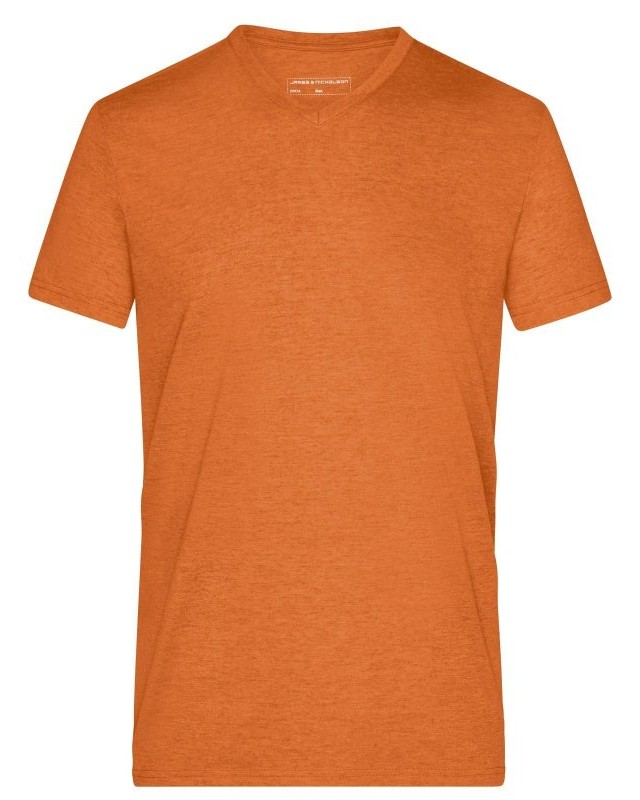 65% poliestere, 35% cotone. T-shirt alla moda con scollatura a V Melange di single jersey di alta qualità. Taglio disinvolto e comodo, Collo a V con elastan, Tessuto esterno (170 g/m²).