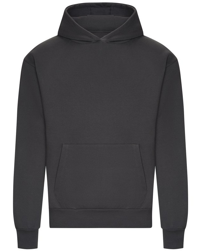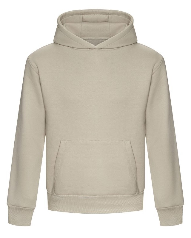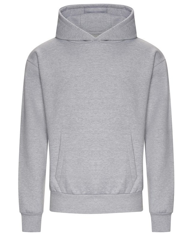 70% cotone 30% poliestere riciclato. Felpa unisex oversize con cappuccio, ampia tasca a marsupio, felpata internamente, polsini e orlo a costine, cappuccio a tre pannelli, in poliestere e pregiato cotone pesante, lato esterno in 100% cotone per una migliore resa di stampa. Etichetta strappabile. Col. Heather Grey 60% cotone 40% pol. ric.