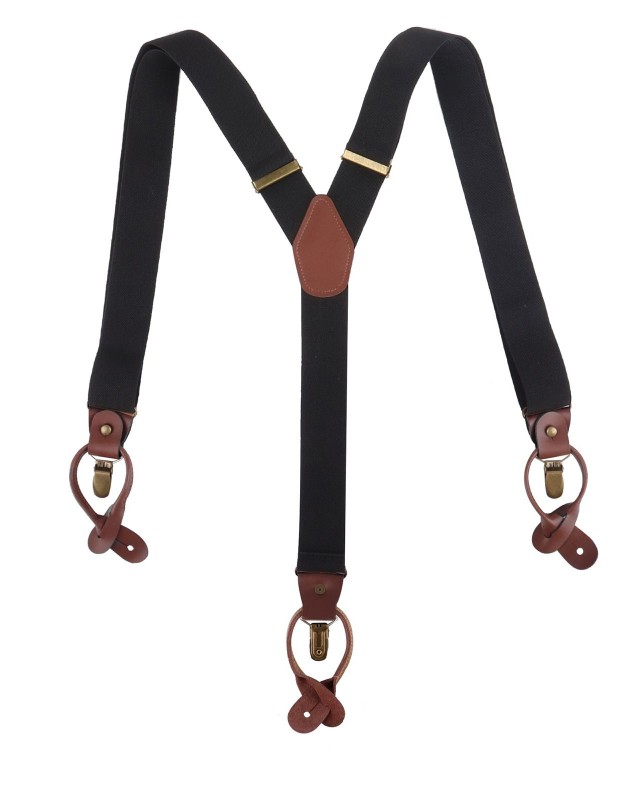 100% poliestere. Bretelle urban-style in poliestere elasticizzato, inserti in vera pelle, clip in ottone anticato. Dimensioni 3,5cm x 120cm.