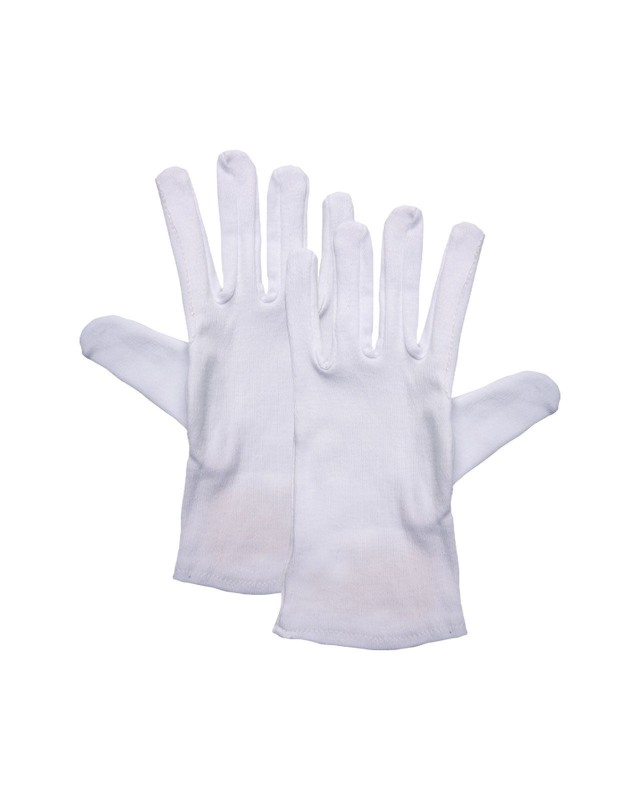 100% cotone. Guanti per servire Sevilla, 19 g/pezzo, traspirante, EN 420. Pollice anatomico, rinforzo nel palmo e nelle dita, protegge le dita, protegge le mani ed il prodotto. 1 paio. Taglia unica.