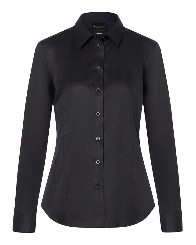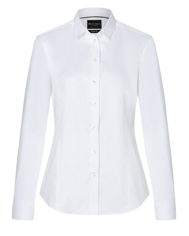 64% cotone, 32% poliestere, 4% elastan. Camicia con maniche a 3/4 da donna, vestibilità regolare, colletto classico, con polsino regolabile a doppio bottone, lavabile a 60°C