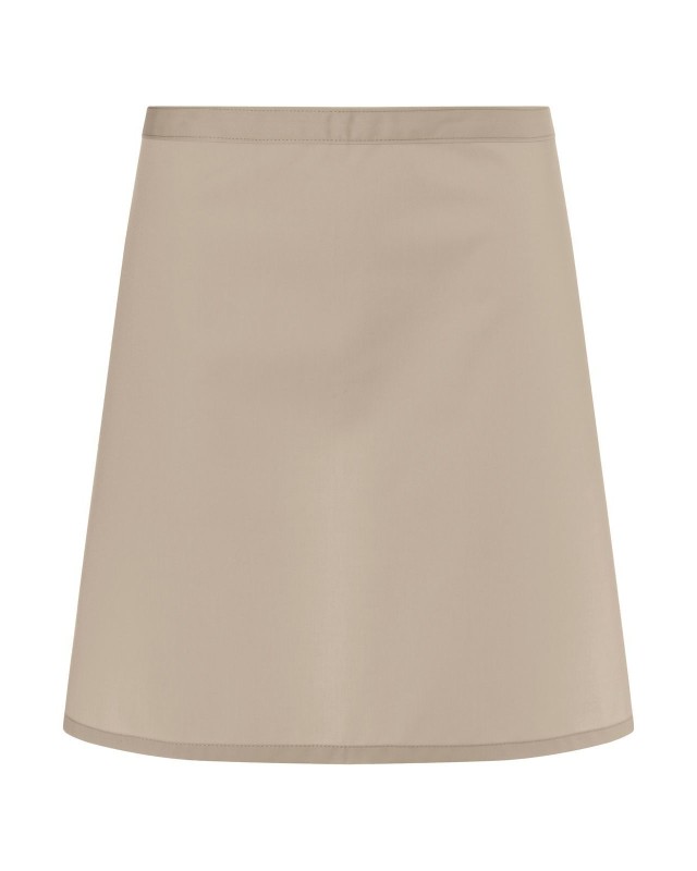 65% poliestere, 35% cotone. Grembiule con cinta continua dello stesso tessuto del grembiule, con cucitura rinforzata. Lavaggio a 60°C. Misura 70x55cm.
