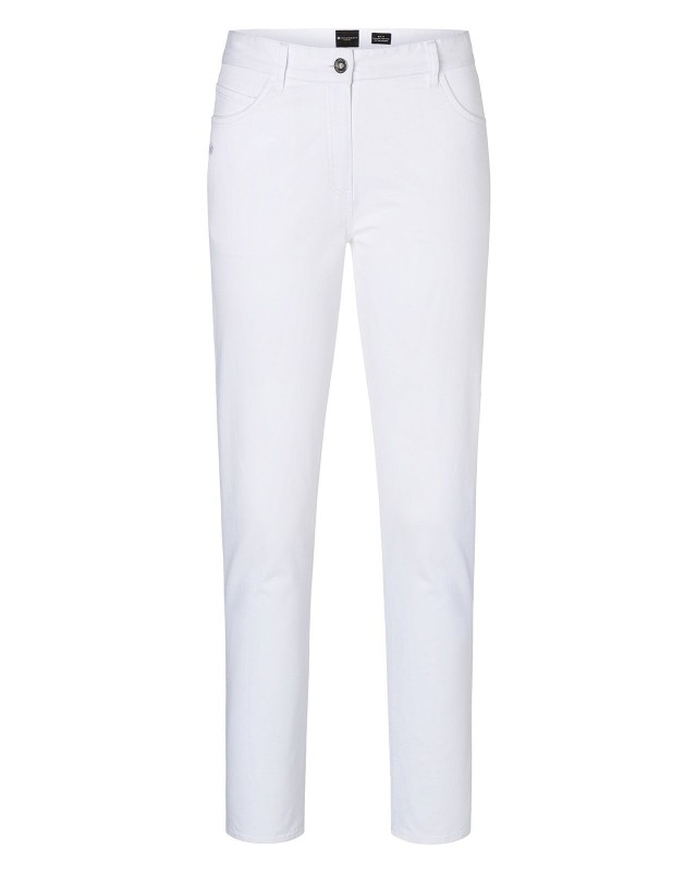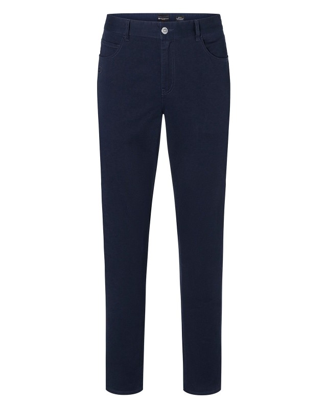 98% cotone, 2% elastan. Pantaloni casual da uomo in stile classico a 5 tasche, sviluppato per le massime esigenze di lavaggio (bianco: lavabile a 95°C / colorato: lavabile a 60°C), 2 tasche frontali, 1 tasca porta-monete a destra, 2 tasche posteriori, con passanti per cintura.