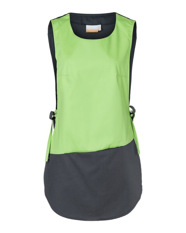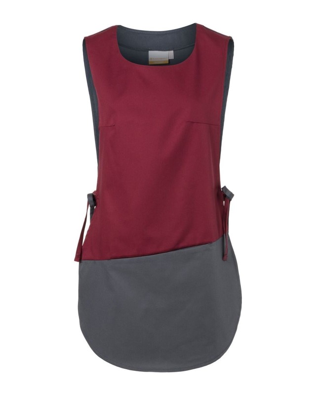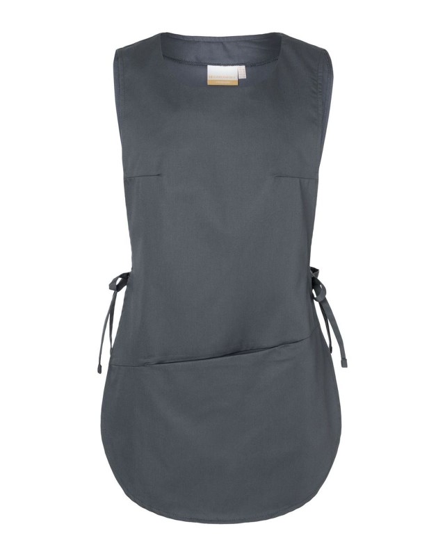 65% poliestere, 35% cotone. Tunica in tessuto rifinito e irrestringibile. Busto con stecche, tasca con cuciture nascoste. Adatta per lavaggio industriale.