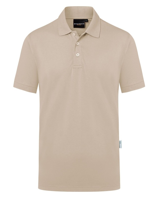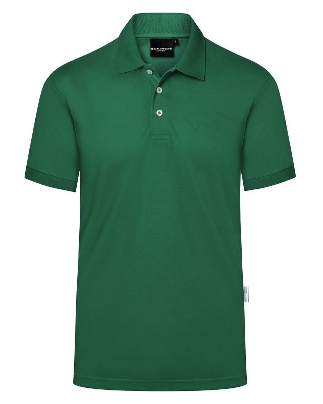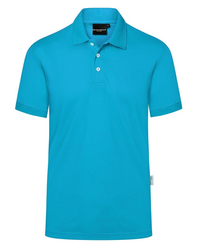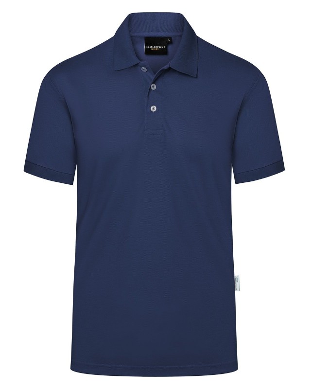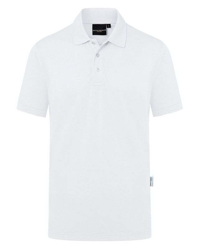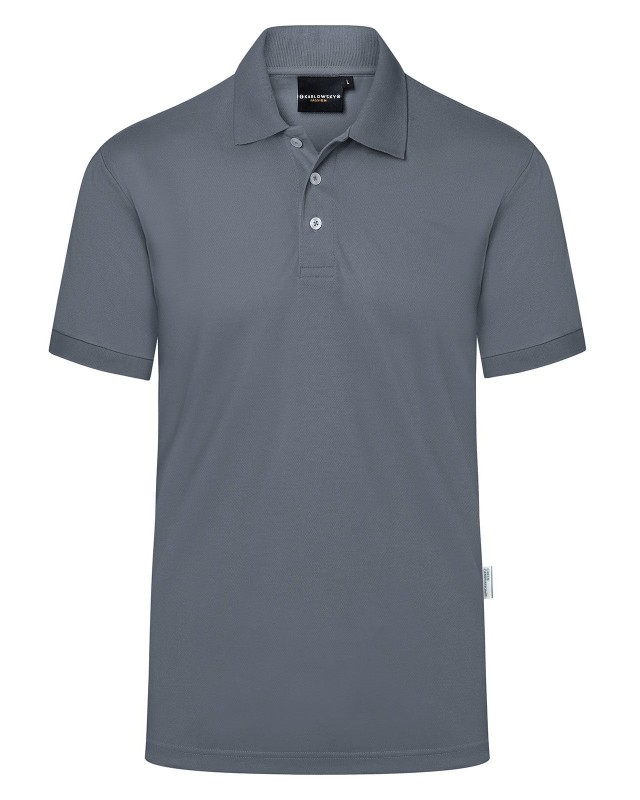 51% poliestere riciclato, 47% cotone, 2% elastan, 220 g/m², jersey-piqué. Polo da uomo in materiale resistente e sostenibile, easy-care. Taglio dritto, colletto in maglia con banda di rinforzo, bordi manica in maglia, cuciture doppie, pattina a 3 bottoni a contrasto, spacchetti laterali. Prodotto certificato GRS, Green Button e Oeko-Tex.