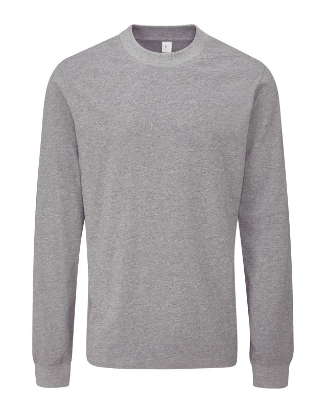 100% cotone organico. T-shirt a manica lunga, unisex, vestibilità morbida, polsini e girocollo a costine, orli ad ago singolo, etichetta posteriore strappabile, etichetta con QR code, lavabile a 40° C