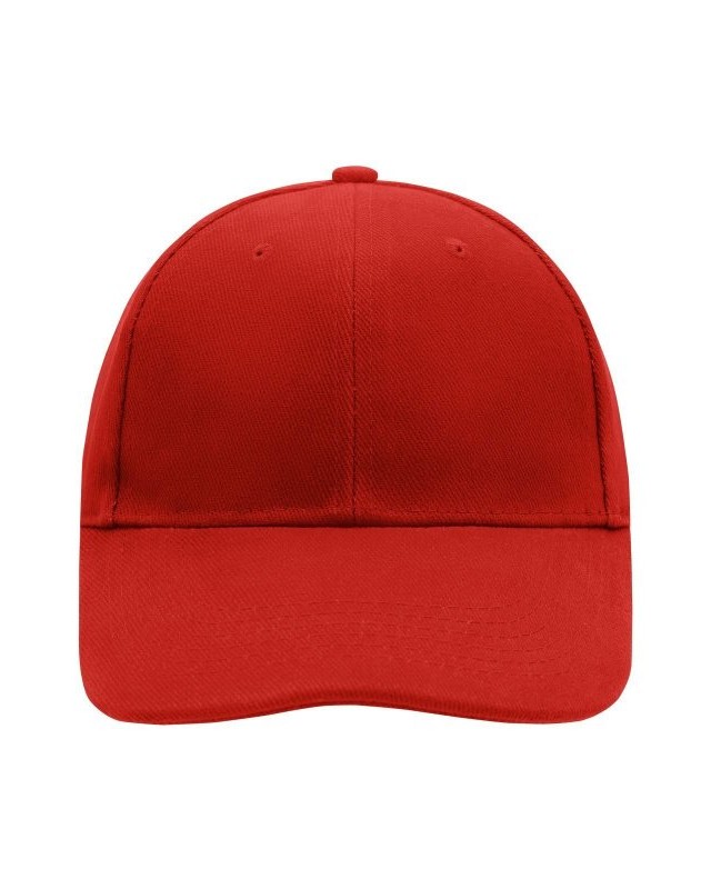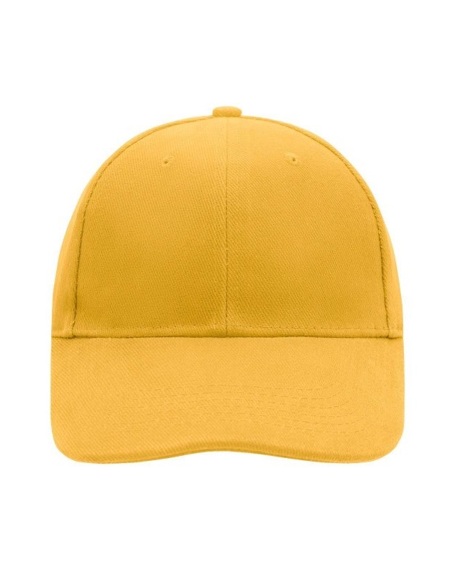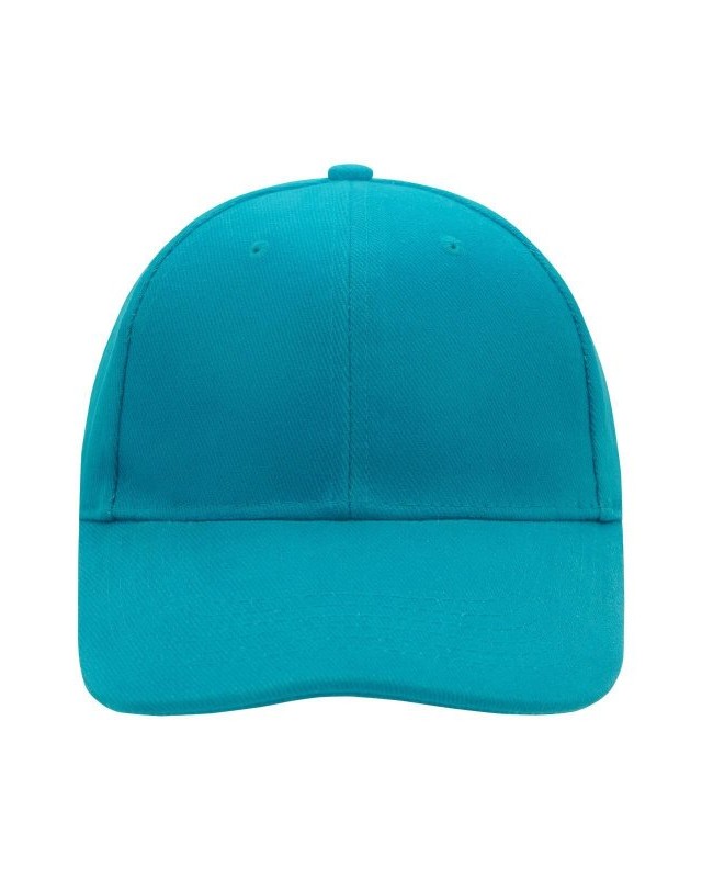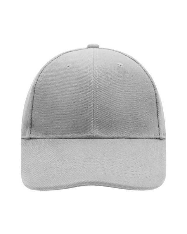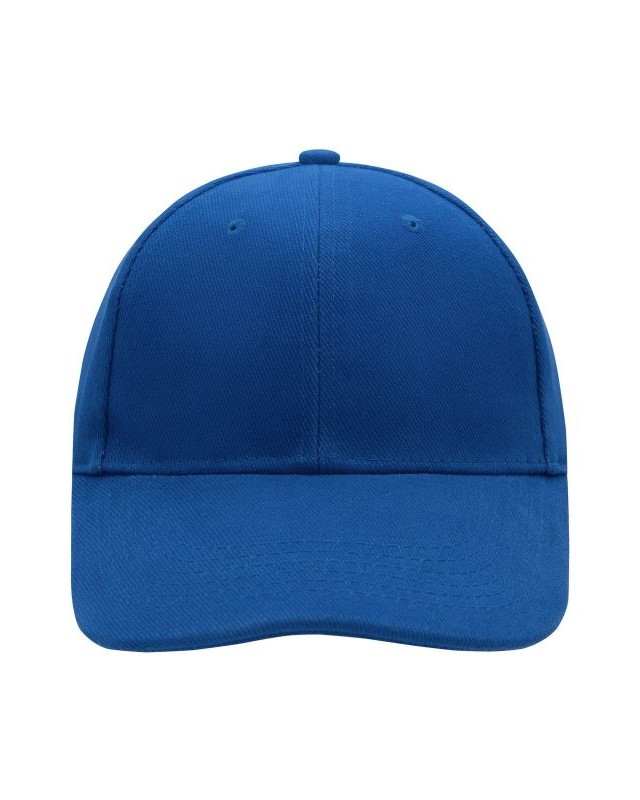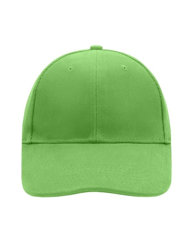 100% cotone. Cap classico con pannelli frontali laminati 6 fori traspiranti imbastiti, 8 cuciture decorative sulla visiera, Fascetta tergisudore imbottita in satin. Chiusura in metallo a clip con asola in stoffa. Cotone spazzolato extra forte.