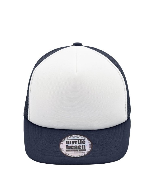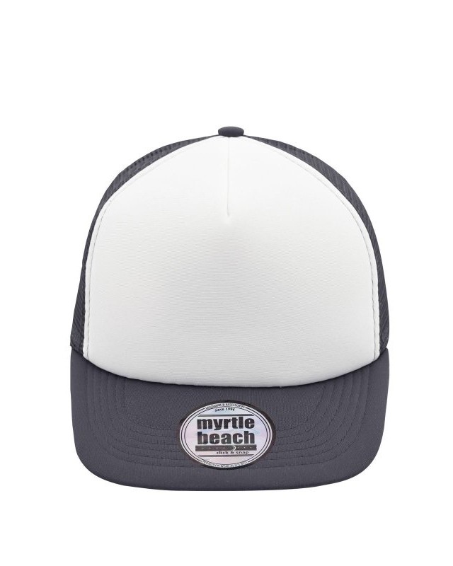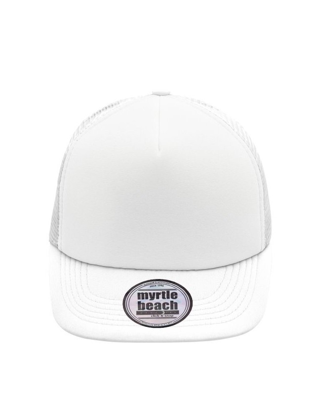 100% poliestere. 6 cuciture decorative sulla visiera, fascia interna tergisudore imbottita in cotone, adesivo rimovibile sulla visiera, chiusura "Click & snap" per aggiustare la taglia