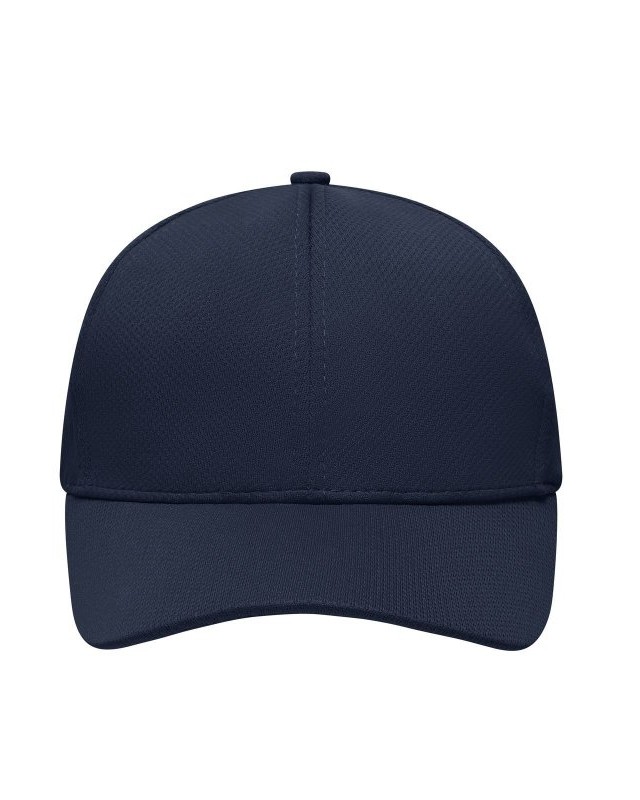 Tessuto esterno: 100% poliestere. 4 fori di ventilazione sui pannel li posteriori, pannello frontale laminato, fascia interna imbottita, chiusura in velcro.