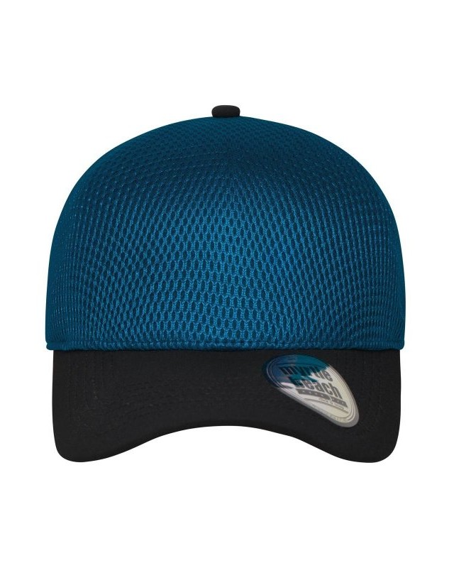Tessuto esterno: 90% poliammide, 10% elastan, Tessuto esterno 2: 100% cotone, Interno: 100% poliestere. Cappellino senza pannelli, area frontale laminata, 6 cuciture decorative sulla visiera, fascia elastica per una vestibilità perfetta, chiusura automatica per la regolazione della taglia.