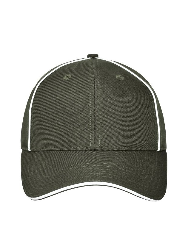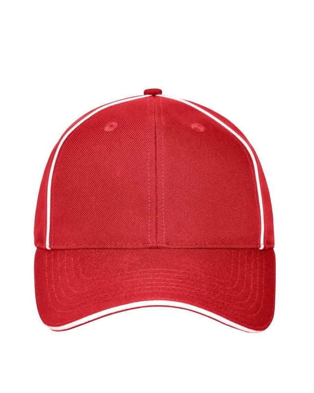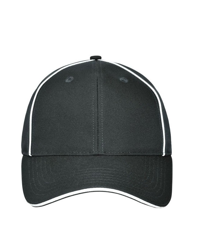 100% poliestere (reciclato). Cappellino da lavoro a 6 pannelli. 6 fori di ventilazione ricamati, 6 cuciture decorative sulla visiera, pannelli frontali laminati, piacevole da indossare grazie alla fascia imbottita, regolazione della clip in argento opaco con occhiello metallico.