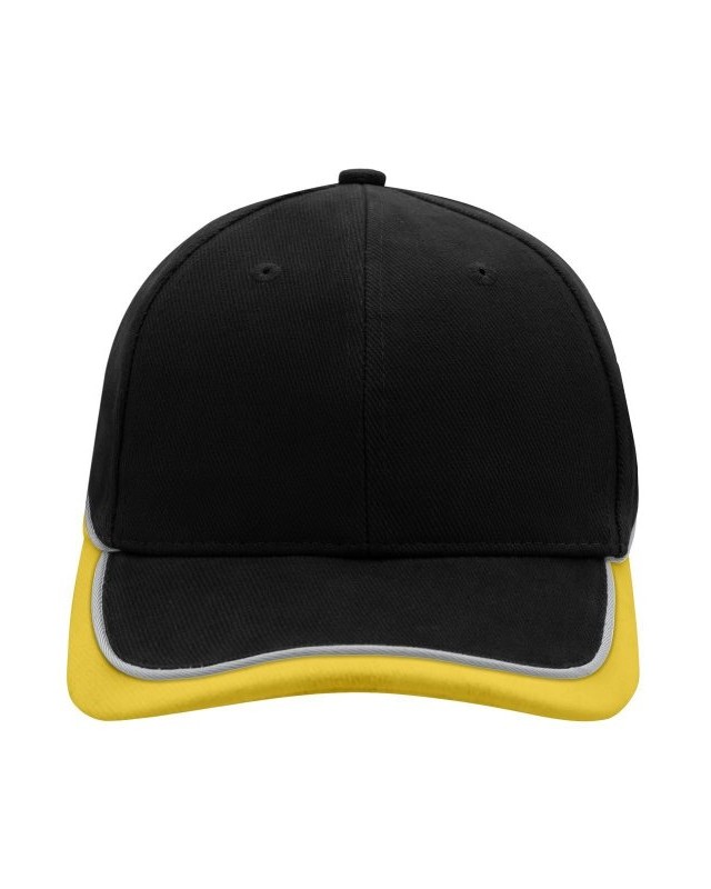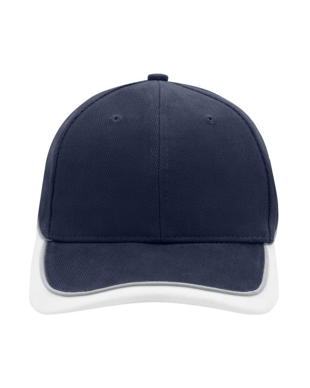 100% cotone. Cappello 6 pannelli di altissima qualità 6 fori di aerazione ricamati, Ricchi inserti a contrasto e cordoncino attorno al cappello, Pannello frontale laminato, Fascetta tergisudore in satin . Chiusura a clip con occhiello metallico, Cotone molto pesante pettinato. Cotone ruvido, policromo, Sandwich.