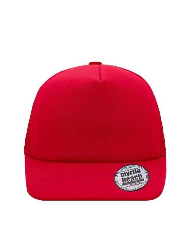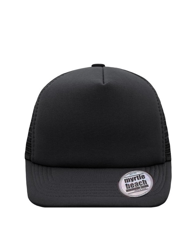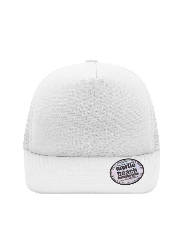 100% poliestere. Cappellino a 5 pannelli con visiera piatta, 6 cuciture decorative sulla visiera, fascetta tergisudore in cotone, etichetta sulla visiera. Regolazione della taglia con chiusura ""click & snap", taglia unica.
