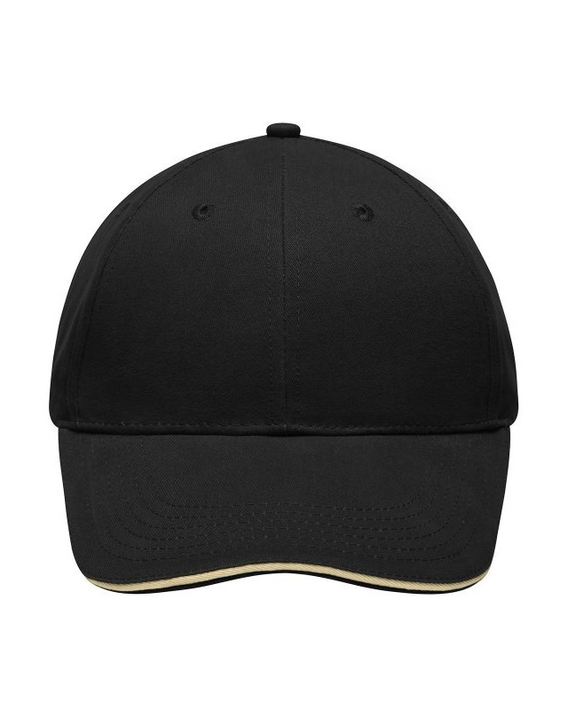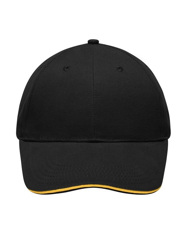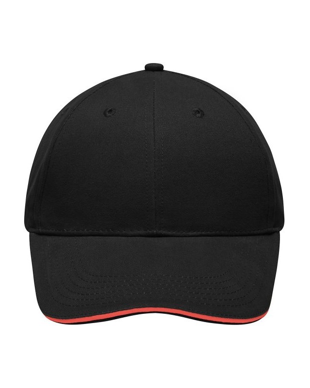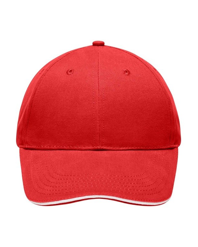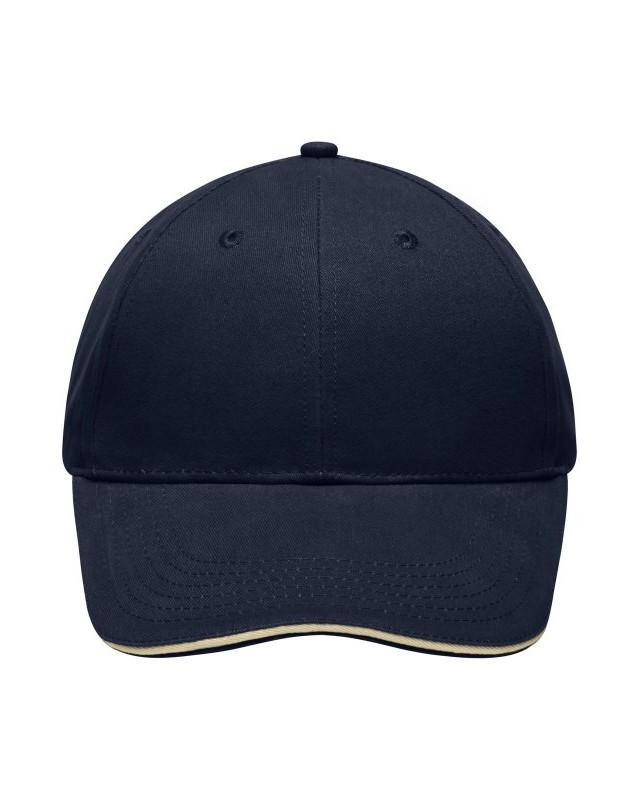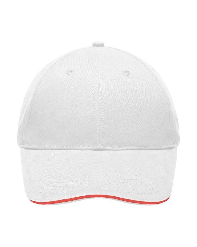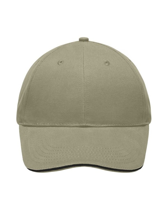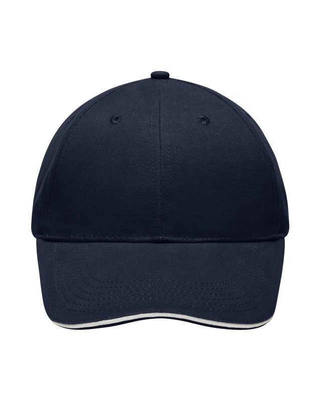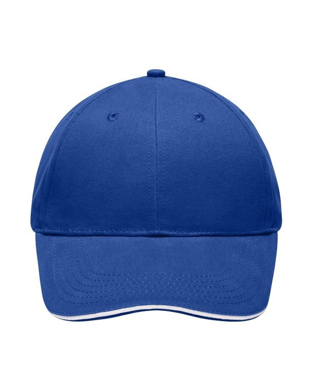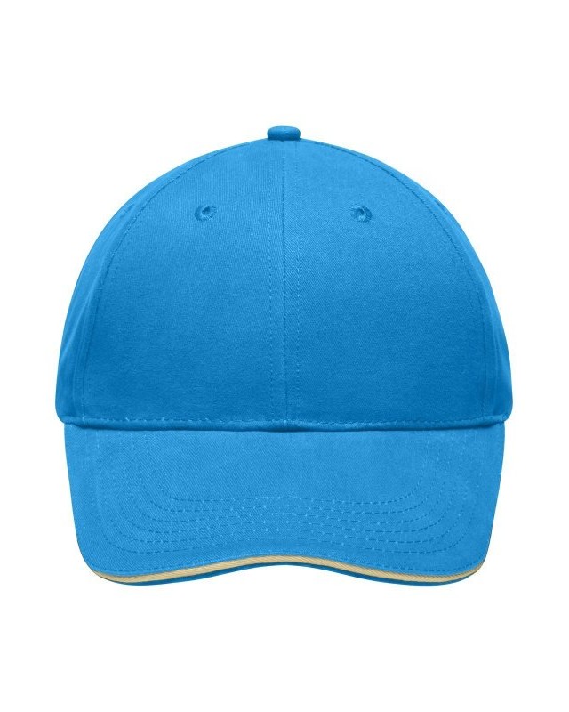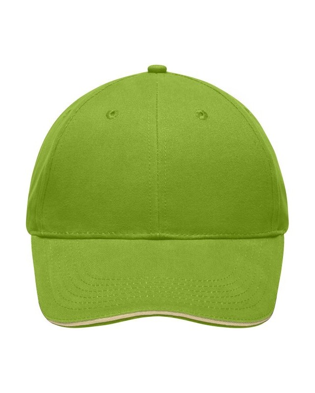 100% cotone. Sandwich Cap leggero e morbido a 6 pannelli 6 fori di aerazione imbastiti, 6 cuciture sulla visiera, Pannelli frontali laminati, Fascetta tergisudore imbottita in Satin, Chiusura a clip in argento opaco con asola in metallo, Cotone spazzolato ruvido, policromo, Sandwich.