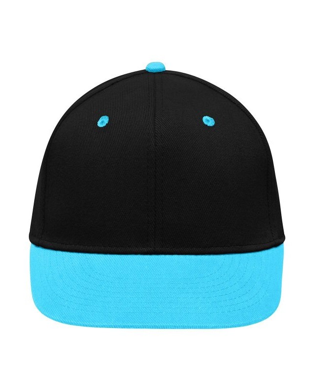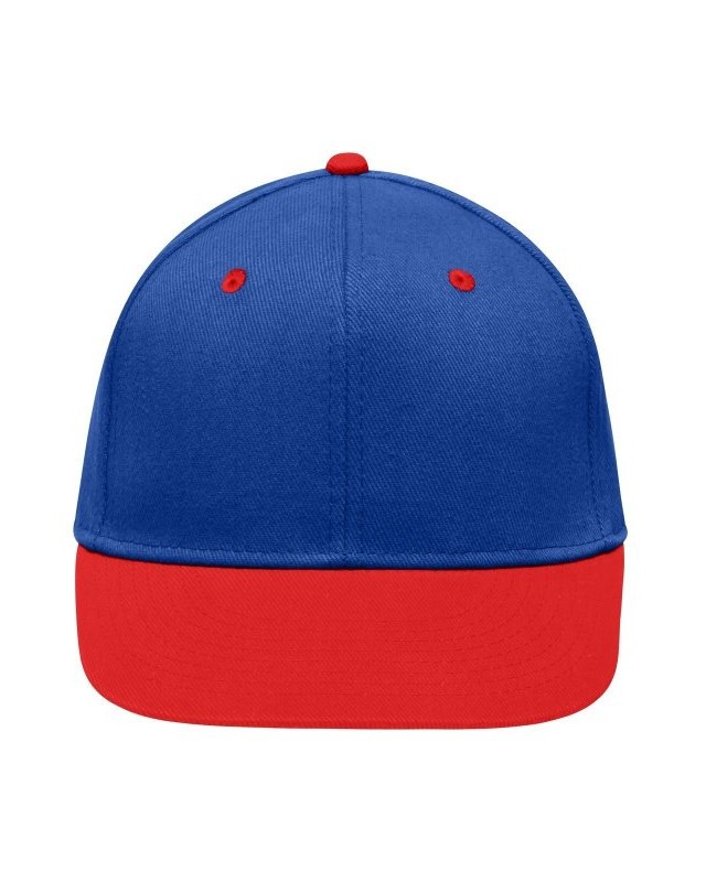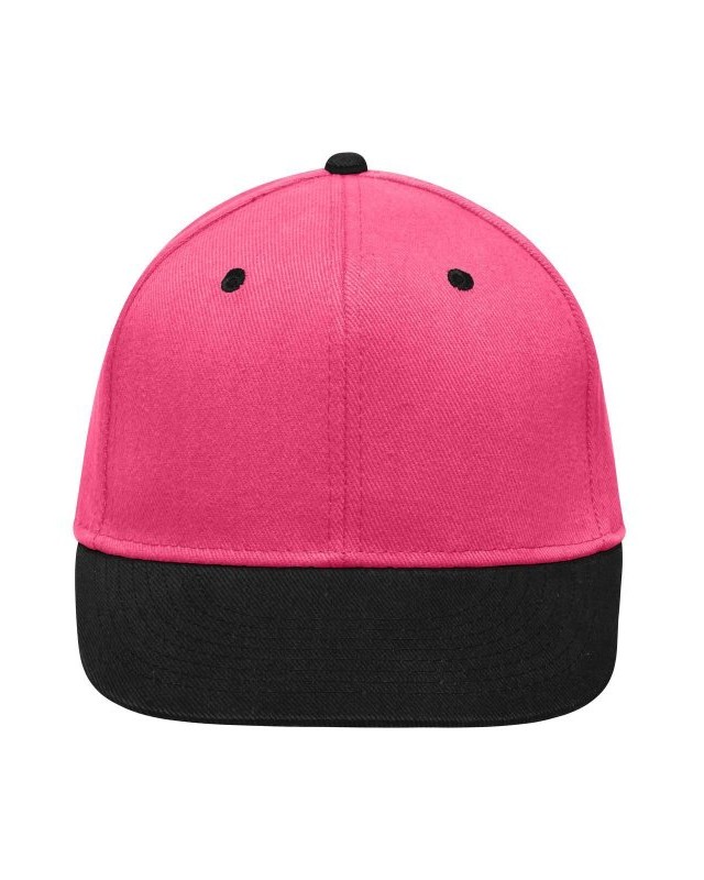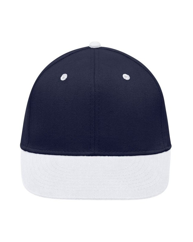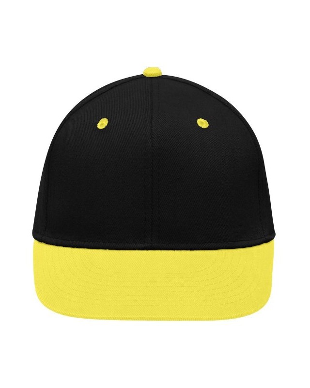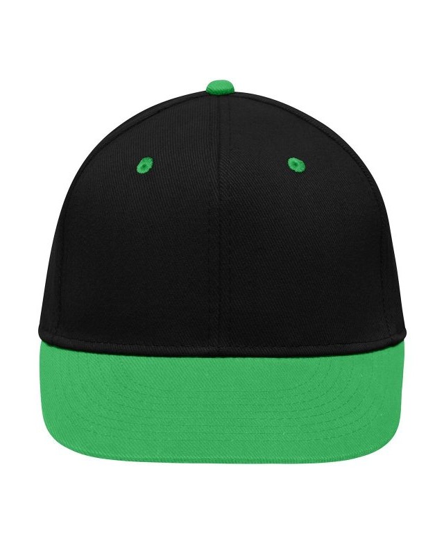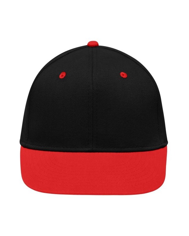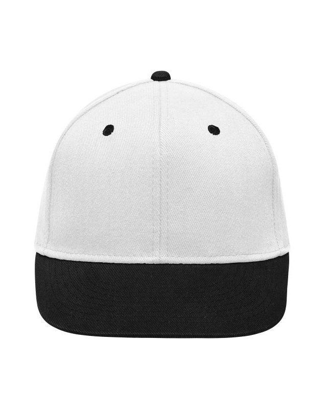 100% cotone. Elegante berretto a 6 pannelli con visiera piatta e look 'High Profile' 6 occhielli di ventilazione ricamati in colore contrastante. Visiera piatta con 8 linee di cucitura decorative. Forma modernissima 'High Profile'. Comodissimo da indossare grazie alla fascia tergisudore imbottita. Regolazione taglia con chiusura ""click & snap"". Cotone spazzolato.