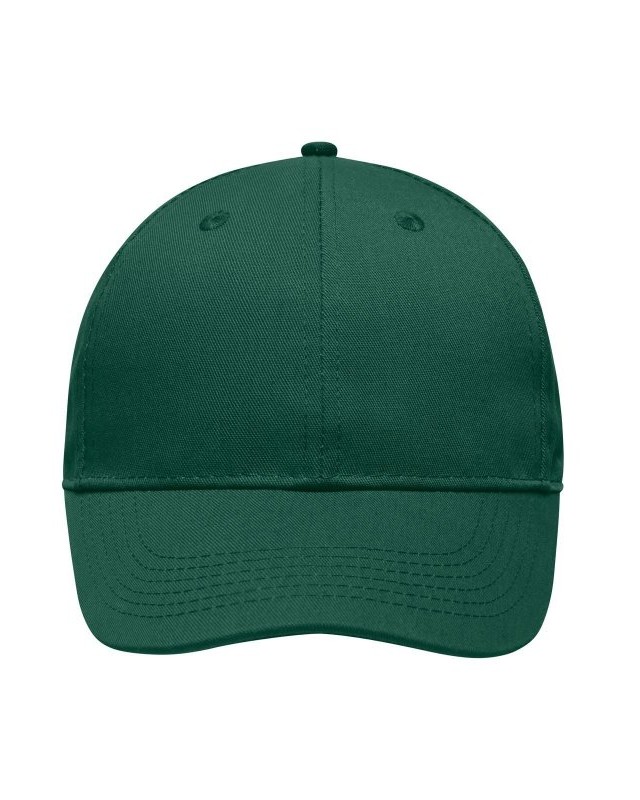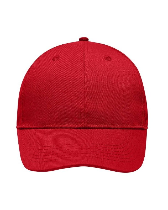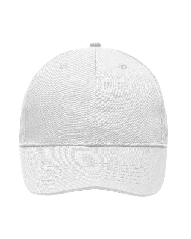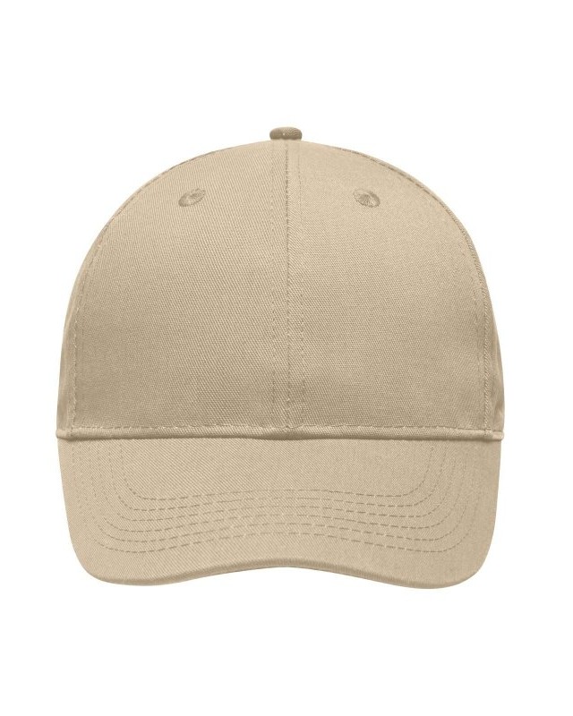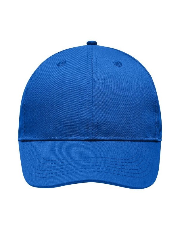 65% poliestere, 35% cotone. Cappellino 6 pannelli di qualità Robusto, resistente tessuto misto, 6 fori per l’areazione ricamati, 6 cuciture sulla visiera, Pannelli frontali laminati, Fascia tergisudore imbottita per un comfort ottimale, Chiusura a clip in argento opaco con asola in metallo.