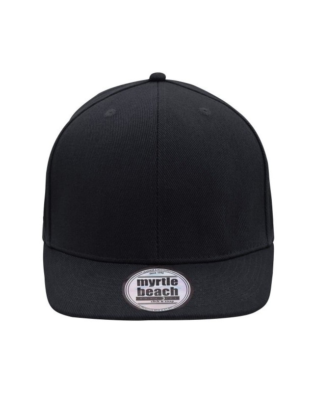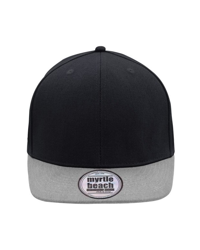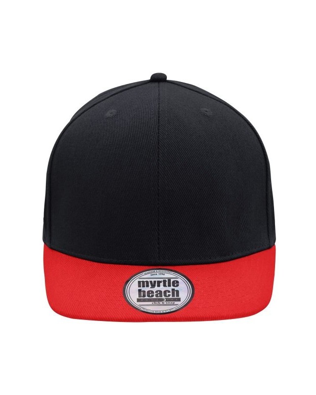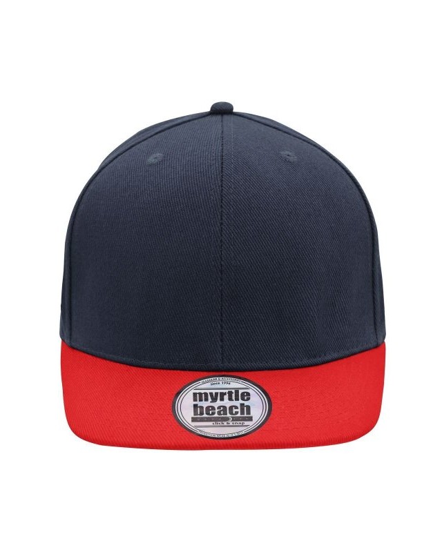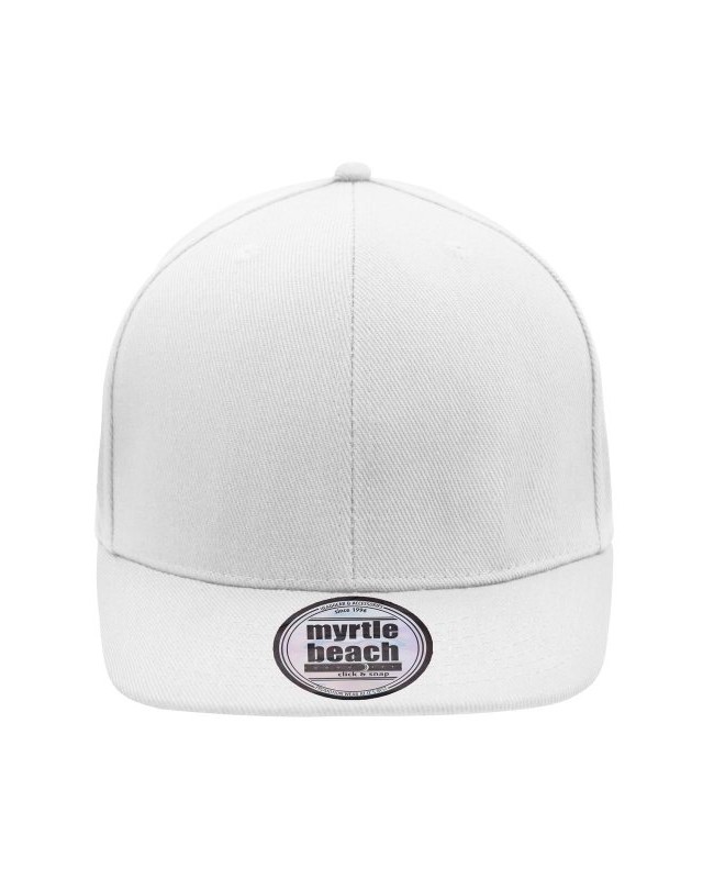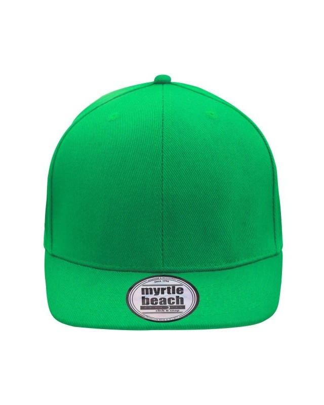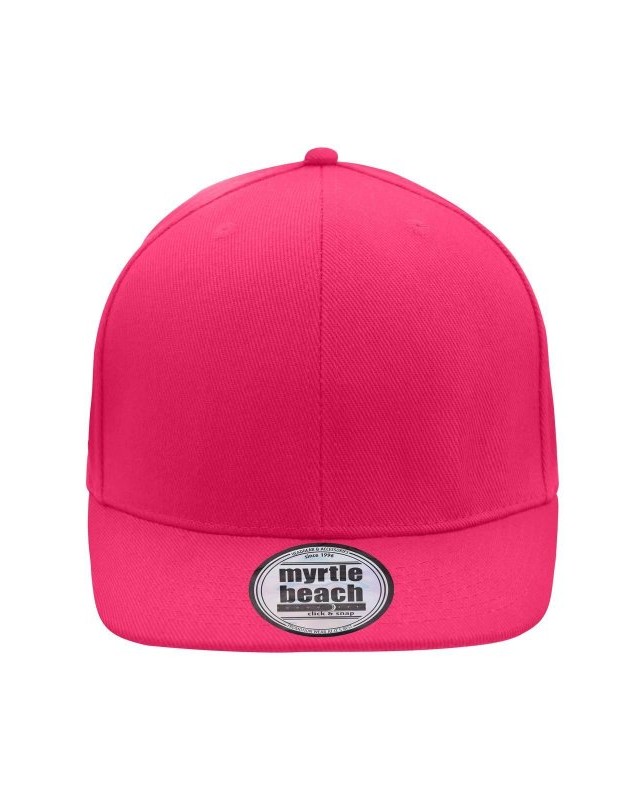 100% cotone. Berretto Streetstyle. Pregiata forma ""High Profile"", Visiera piatta con 8 adesivi e 6 cuciture decorative, 6 pannelli con 6 fori per l'aria in maglia, Pannelli anteriori laminati, Massimo comfort grazie alla fascia anteriore imbottita. Chiusura regolabile ""click & snap"".