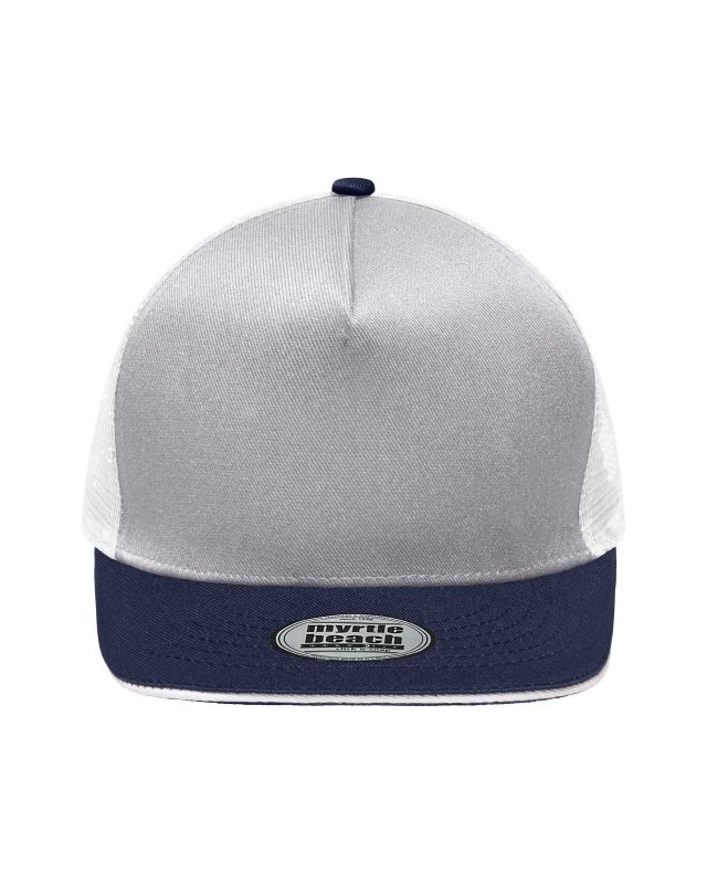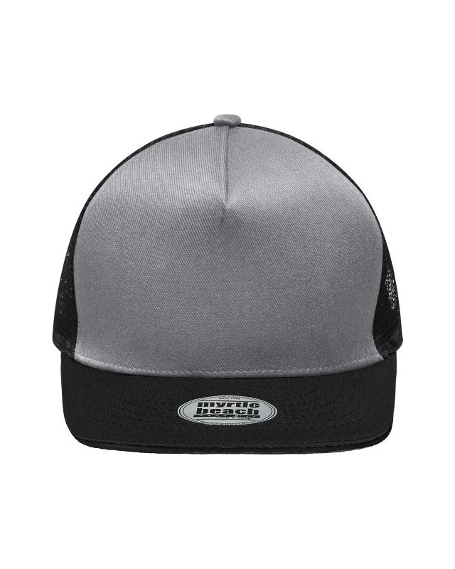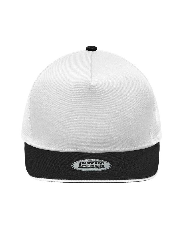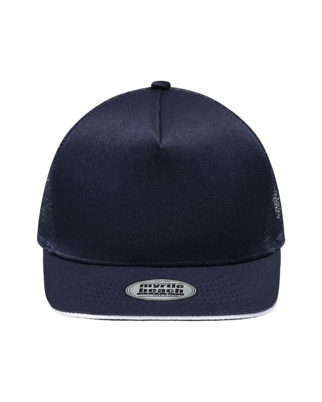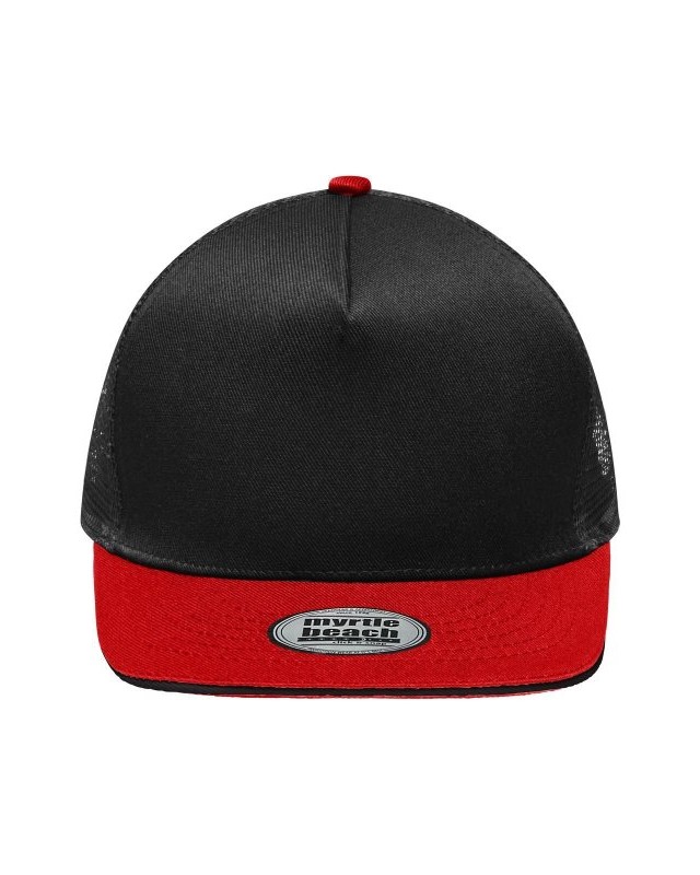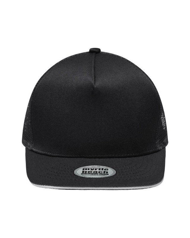 100% poliestere. Berretto in rete con sandwich alla moda Pregiata forma ""High Profile"", Visiera diritta con adesivi e 6 cuciture decorative, 5 pannelli, Pannello anteriore laminato, Massimo comfort grazie alla fascia anteriore imbottita, Chiusura regolabile ""click & snap"".