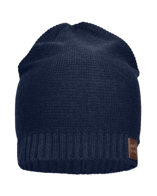 100% cotone. Cappello trendy in cotone Bordato con un trendy disegno a costina, Etichetta in finta pelle sulla visiera, Peso: 45 g. In maglia.