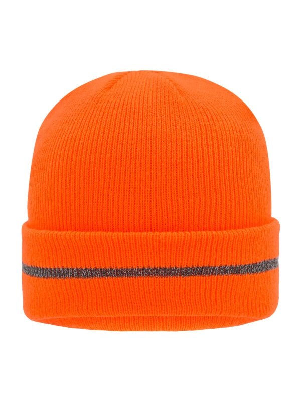 100% poliacrilico. Berretto lavorato a maglia con striscia riflettente sull'orlo (senza funzione protettiva / nessun DPI), maglia a doppio strato.
