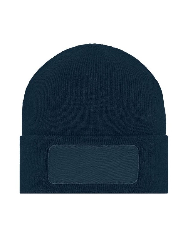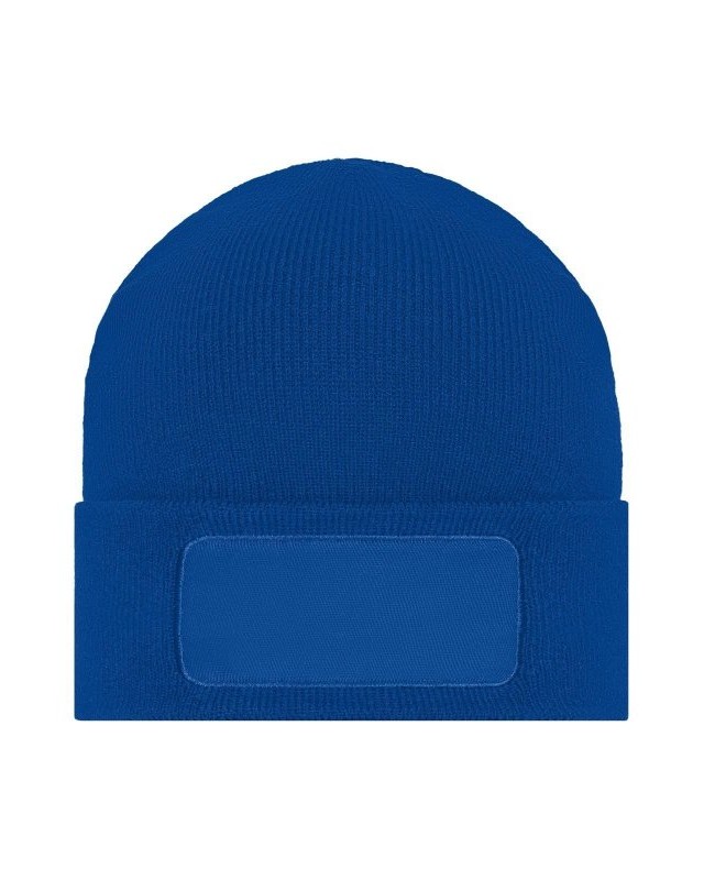 100% poliacrilico. Berretto in doppia maglia, bordo largo con patch in cotone ideale per stampa o ricamo.