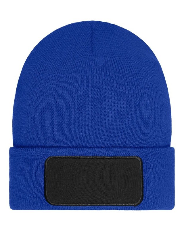 100% poliacrilico. Cuffia a doppia maglia, con ampia toppa ideale per le personalizzazioni con ricamo o stampa.