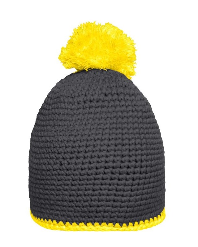 Tessuto esterno: 100% poliacrilico, Fodera: 100% poliestere. Cuffia all’uncinetto con bordi a contrasto e pompon Fatto a mano, Piacevole da indossare grazie alla fascia in pile all'interno, Peso: 85 g. Fodera in fleece.