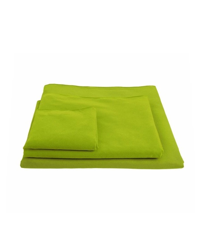 90% poliestere, 10% nylon. Tessuto morbido e liscio. Telo in microfibra altamente assorbente, ideale per lo sport, tempo libero e viaggi. 3 dimensioni: