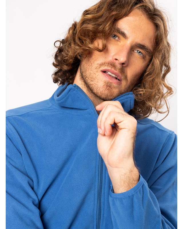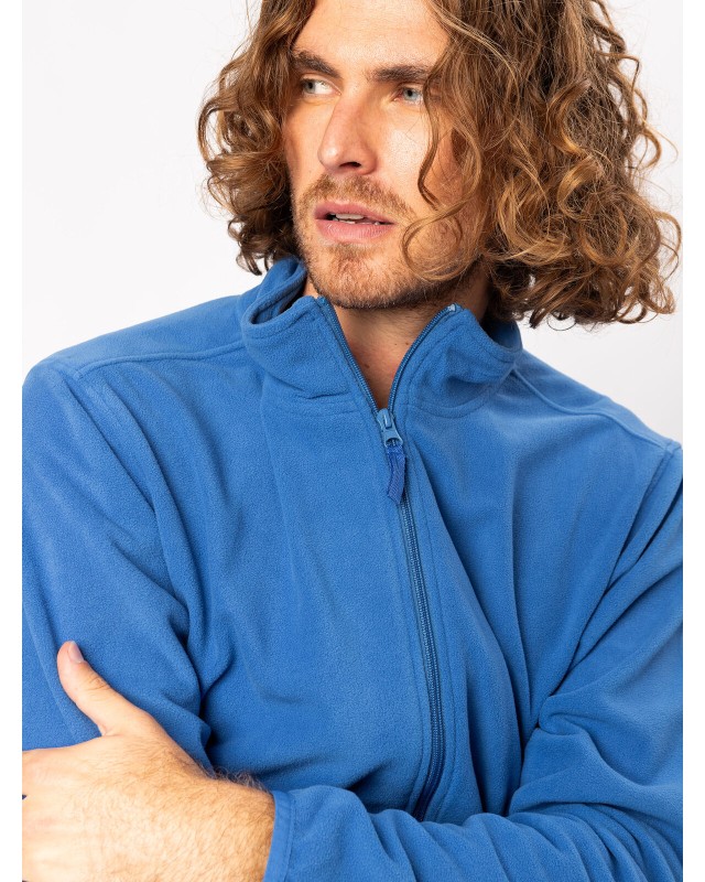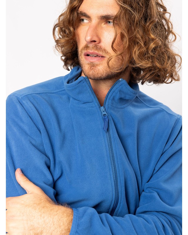 100% poliestere. Micropile con zip intera set-in, tessuto anti-pilling, caldo e leggero. Giromanica e orlo elasticizzati tono su tono, tasche laterali con cerniera.