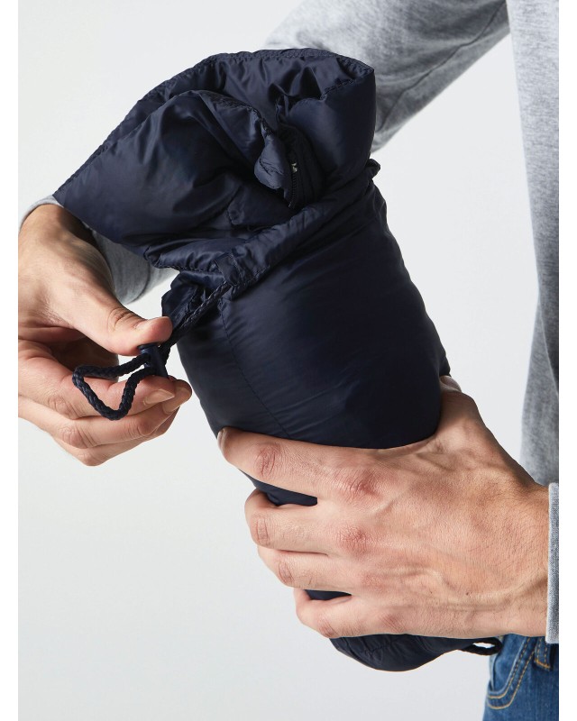100% nylon. Piumino a trapunte orizzontali, 100% nylon 380T- imbottitura 100% poliestere, full zip centrale, tasche laterali, fit regolare, super leggero e pratico da riporre nell'apposita custodia.