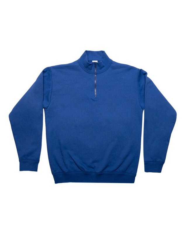 65% cotone riciclato, 35% poliestere riciclato. Felpa mezza zip in tessuto di cotone e poliestere riciclati, manica dritta, felpata internamente. Produzione interamente italiana. Cerniera in plastica, tirazip in metallo. Cuciture laterali. Etichetta strappabile.