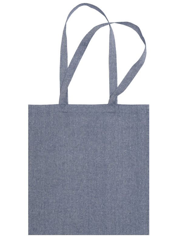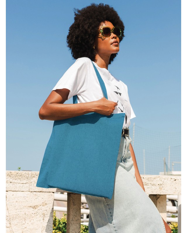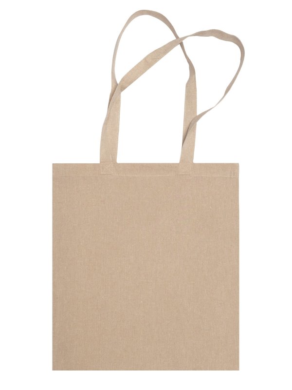 100% cotone riciclato. Shopper riciclata con manico lungo 67 cm, prodotto stirato per una migliore stampabilità. Etichetta removibile. Dimensione: 38 x 42 cm. Area stampabile: 26 x 30 cm.