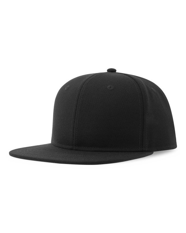 100% Poliestere twill riciclato. Cappello a 6 pannelli in poliestere riciclato, con occhielli ricamati, visiera piatta, chiusura con cinturino in pvc, etichetta removibile, taglia unica (disponibile anche taglia da bambino - ATKSBS).