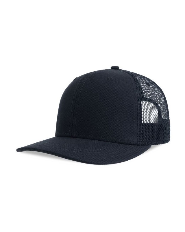 100% cotone twill organico, laterale 100% poliestere riciclato. Cappellino a 6 pannelli in cotone organico e riciclato, visiera precurvata e occhielli ricamati, chiusura in PVC, 4 cuciture sulla visiera, rete posteriore traspirante in poliestere riciclato, etichetta removibile.